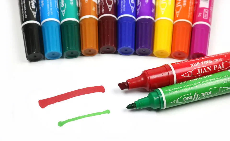 Cada bolígrafo tiene dos extremos, un extremo es una punta ancha para áreas más grandes, el otro es una punta fina para hacer (Barrer) plumas o dibujar rellenos, ojos y otros detalles en poppers de espuma y deslizadores. Dos puntas diferentes son excelentes para la mezcla de expertos, la pintura y el control de tono.