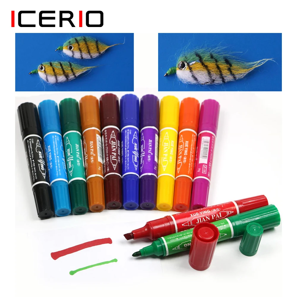 Herramienta para atar moscas de 12 colores, marcadores impermeables, señuelo de pintura, moscas, Poppers, rotulador de pesca