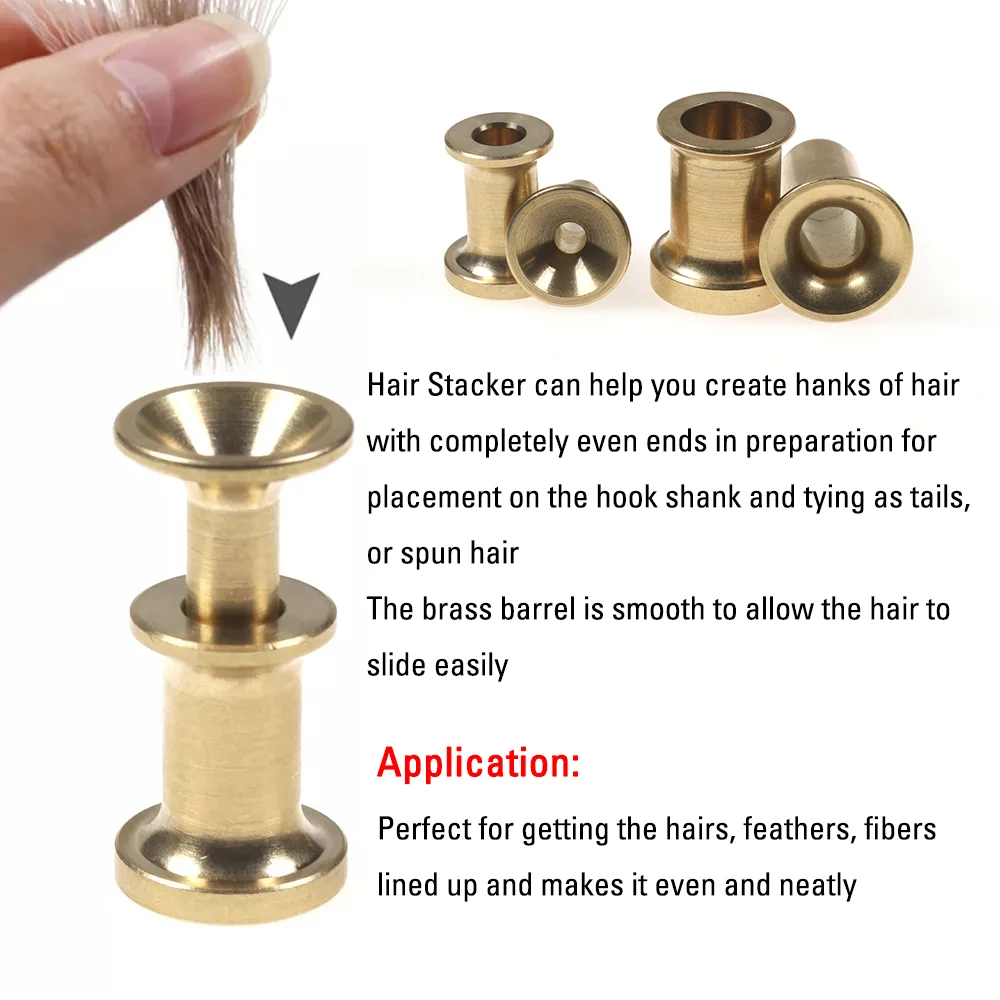 A Hair Stacker is a tool used to smooth out fur (of a deer, squirrel, etc.) before attaching it. It's extremely useful when we'd like to tie tails, wings or heads of our flies. It's as simple as putting the fur to the stacker, gently hitting a tabletop with it a few times and that's it