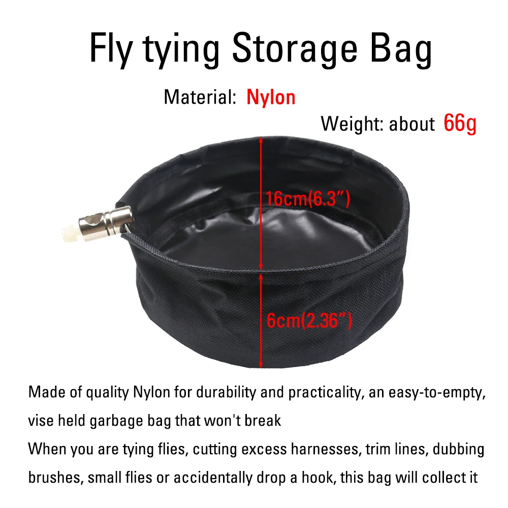 4.When you tie and cut excess harnesses, trim lines, dubbing brushes, small flies or accidentally drop a hook, this bag will collect it.