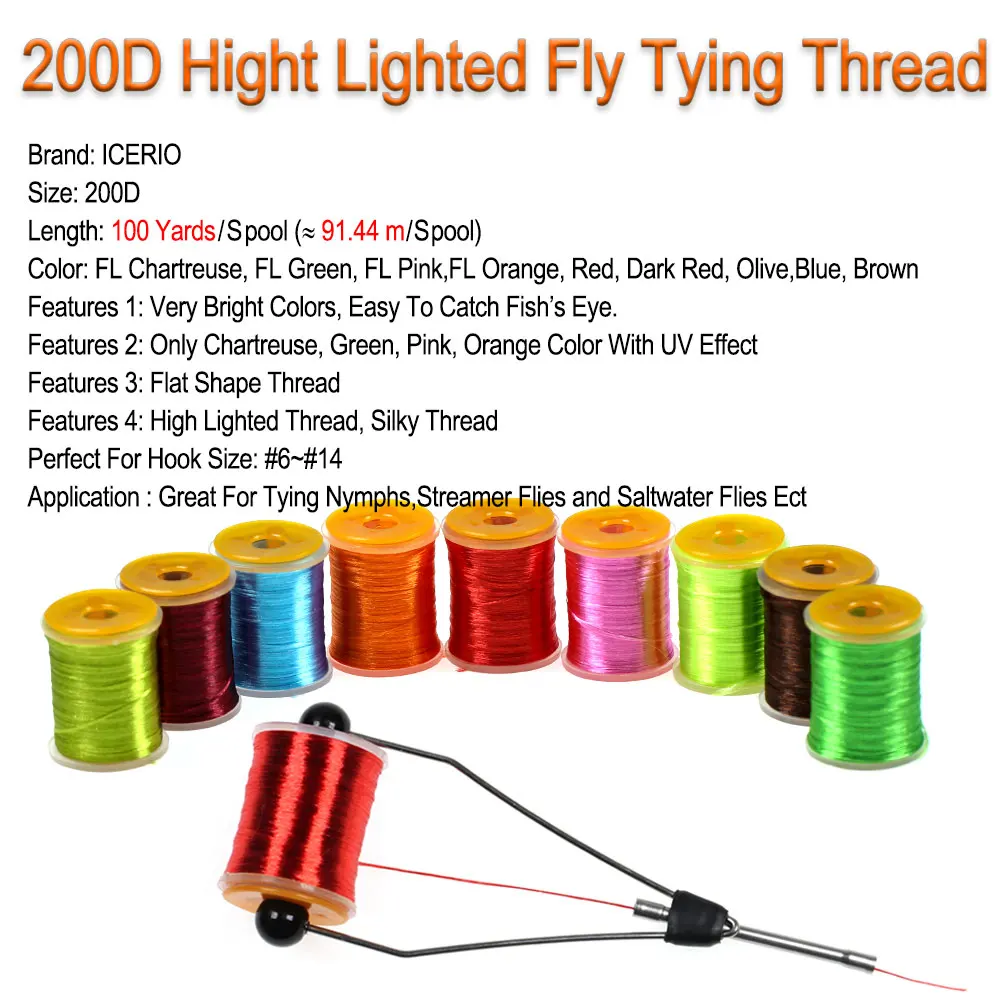 ICERIO 9 200D UV hilo de atado de moscas de alta iluminación hilo sedoso salmón Señuelos de Pesca de lubina Ninfa Streamer Material de atado de moscas