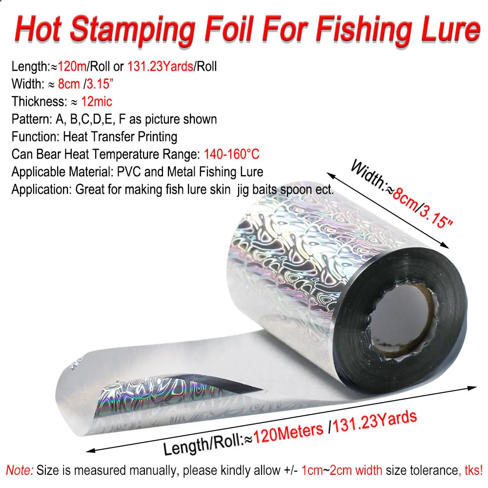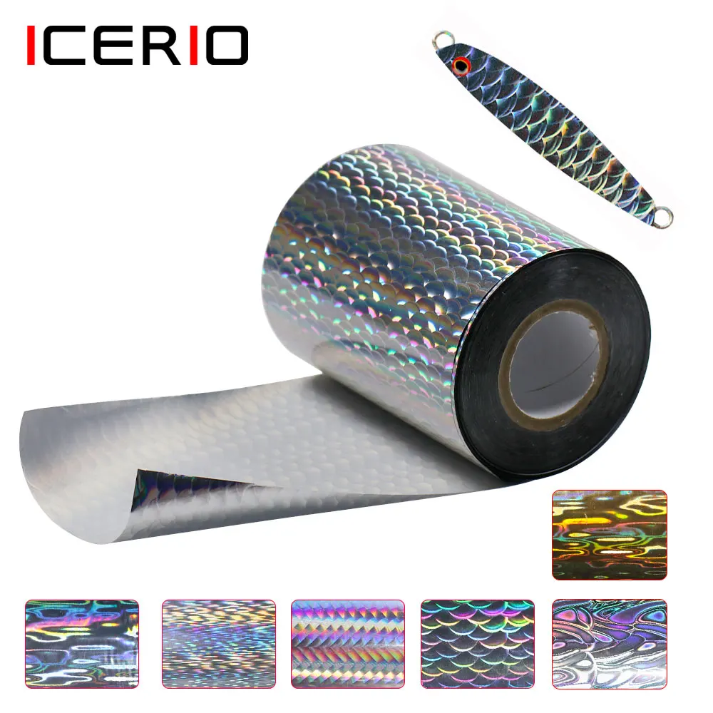 ICERIO 8cm X120m/rollo lámina de estampado en caliente holográfica para señuelo de pesca película de impresión de transferencia de calor de piel papel para cebos Jig cuchara