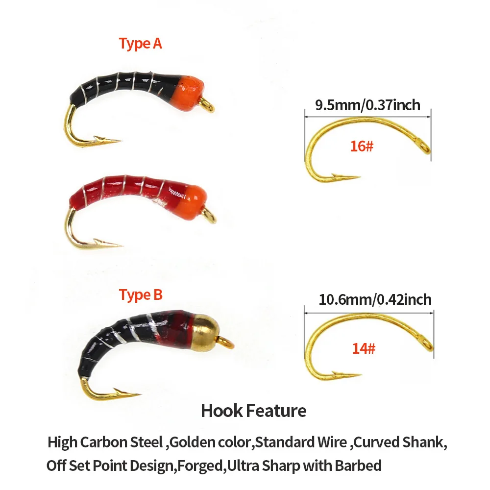 ICERIO latón BeadHead Zebra Midge Ninfa Wet Fly Caddies Pupa Emergers Pesca con moscas Trucha Bluegill Panfish Señuelo de pesca