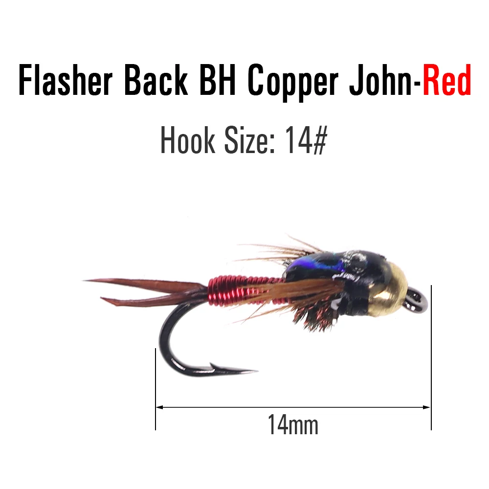 ICERIO Fly Fishing Place Bead Head Red Copper John Nymph Fly Fishing Flies-Juego de 6 Moscas Anzuelo Tamaño 14
