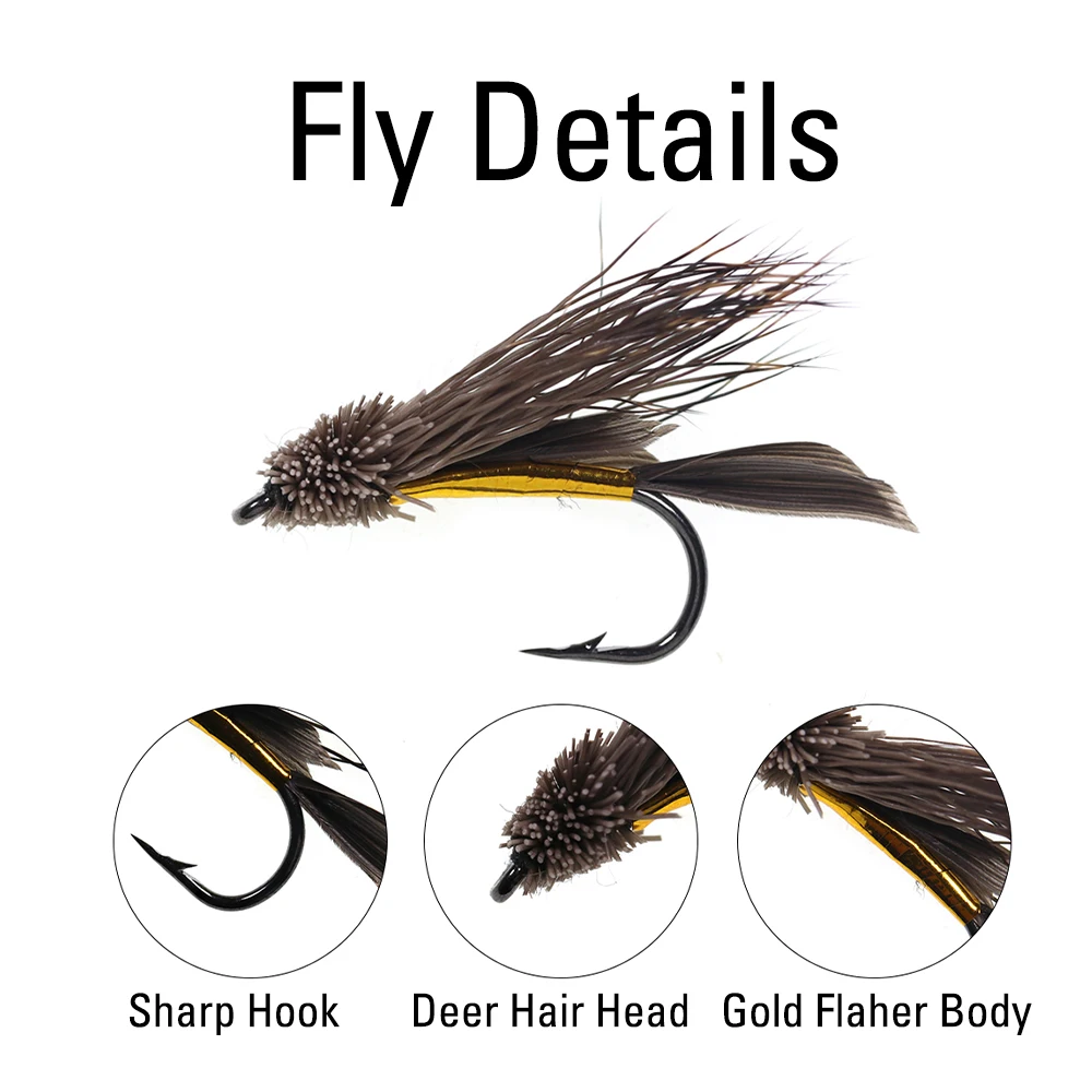 ICERIO 6 piezas pelo de ciervo marrón dorado Body Muddler Minnow trucha mosca pesca serpentina moscas #6