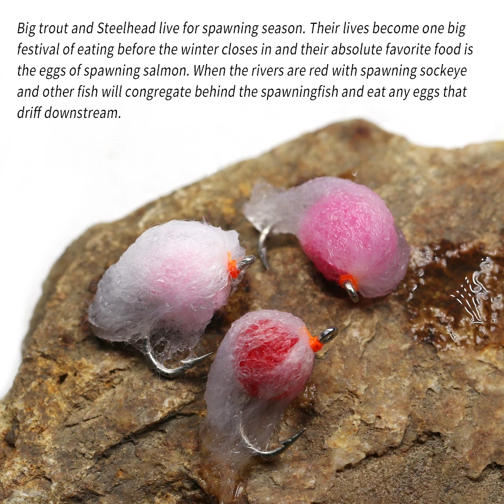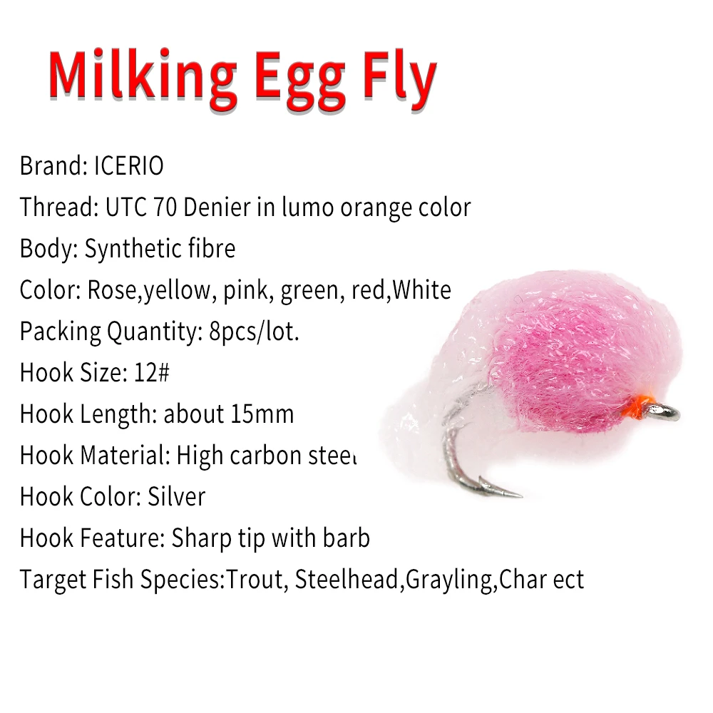 ICERIO 8 piezas de mosca del huevo de la leche imita la mosca de las huevas de salmón Nymph, mosca húmeda para la pesca de la trucha gris, Char, Lures12 #