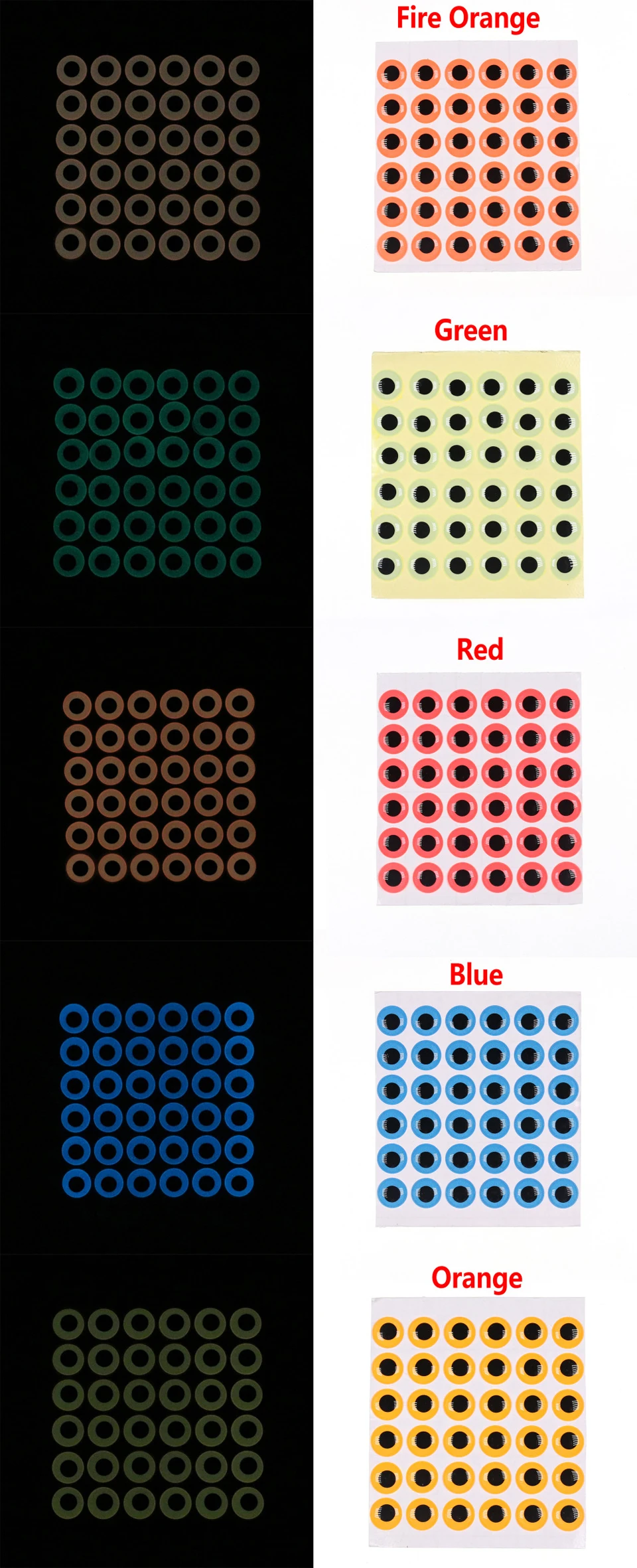 Características: ojos de pez 3D que brillan en la oscuridad con respaldo adhesivo, hecho de material importado de color brillante.