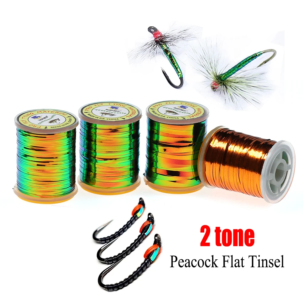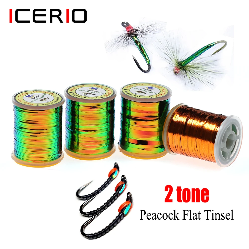 ICERIO dos tonos oropel plano Pavo Real/naranja metálico Mylar para ninfas midges cuerpo de mosca húmeda materiales para atar moscas