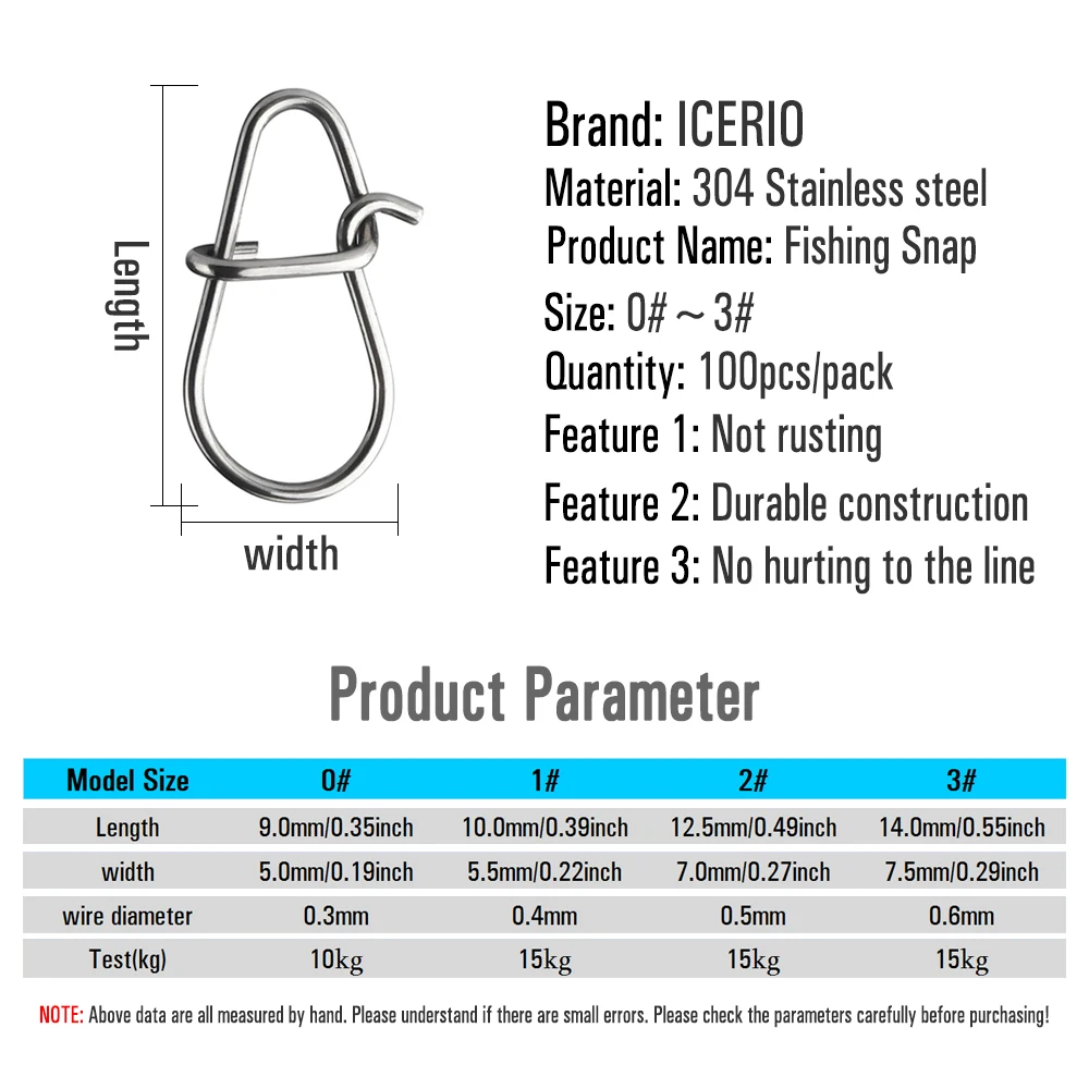 ICERIO 100pcs Fishing Hooked Snap Pin 304 Stainless Steel Fishing Barrel Swivel Lure Connector Accessories Pesca
