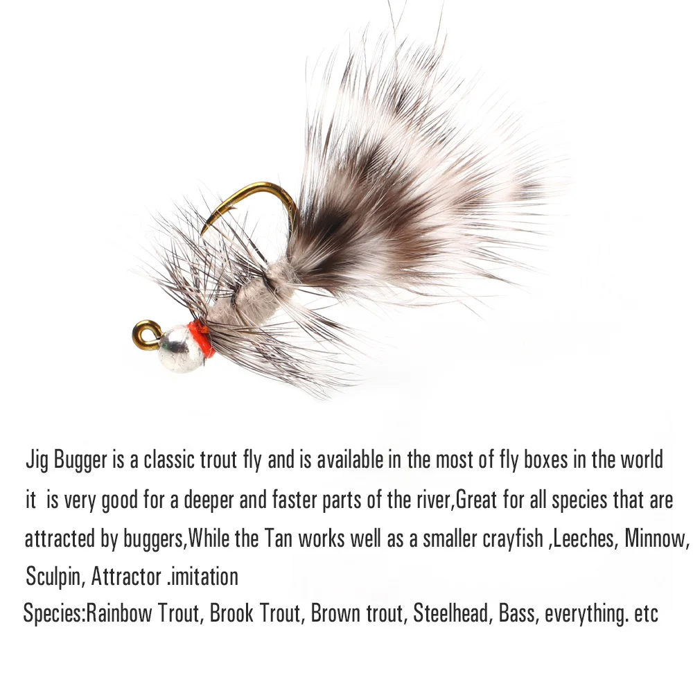 ICERIO Tungsten Jig Bugger Tan Fast Sinking Grizzly Saddle Hackle Wet Nymph Streamer Trucha Steelhead Bass Pesca Moscas