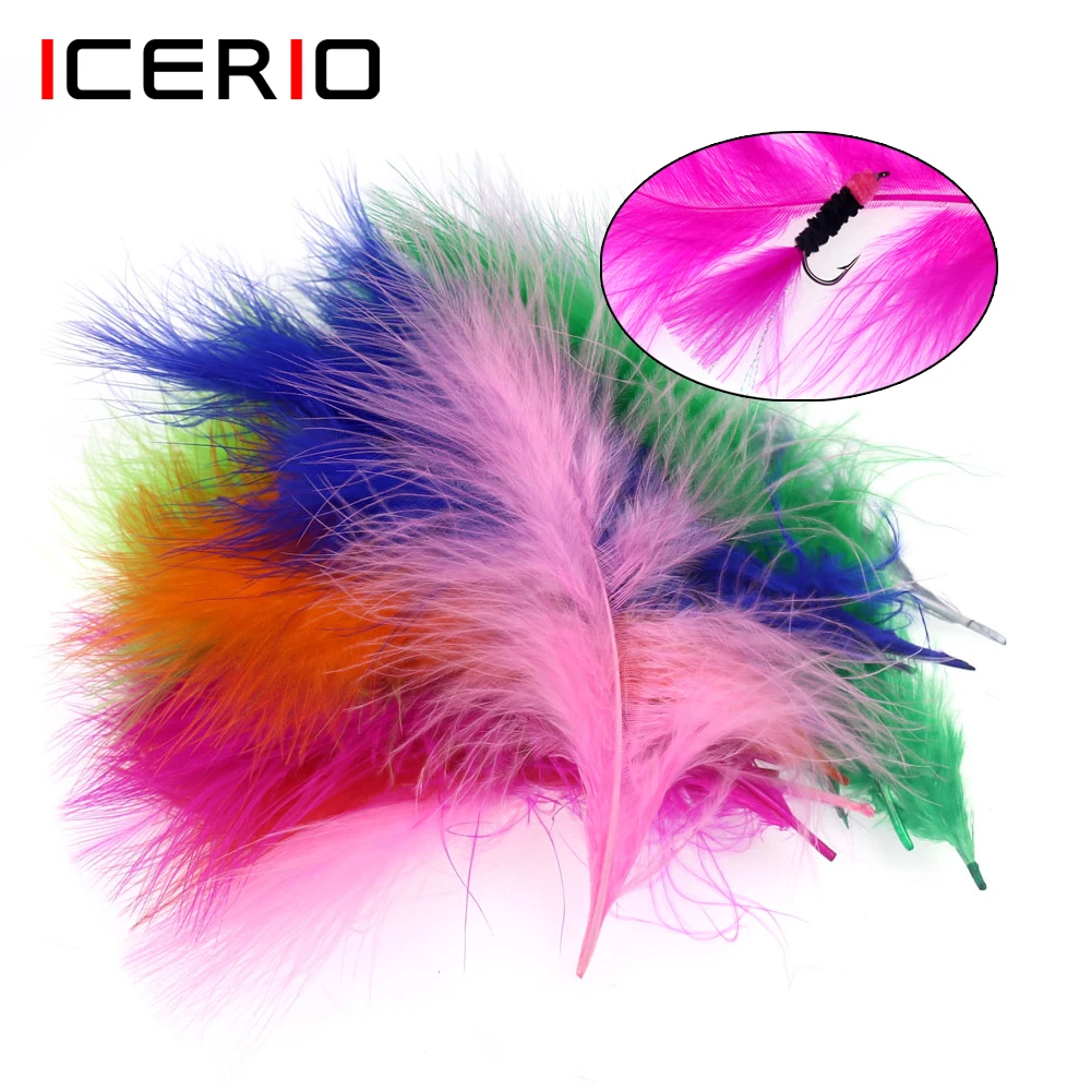 Paquete de 50 Uds./pluma larga de marabú coloreada para serpentina, Mosca, plomo, Jig, Woolly, Bugger Leech, cebo, pesca, Material blanco.