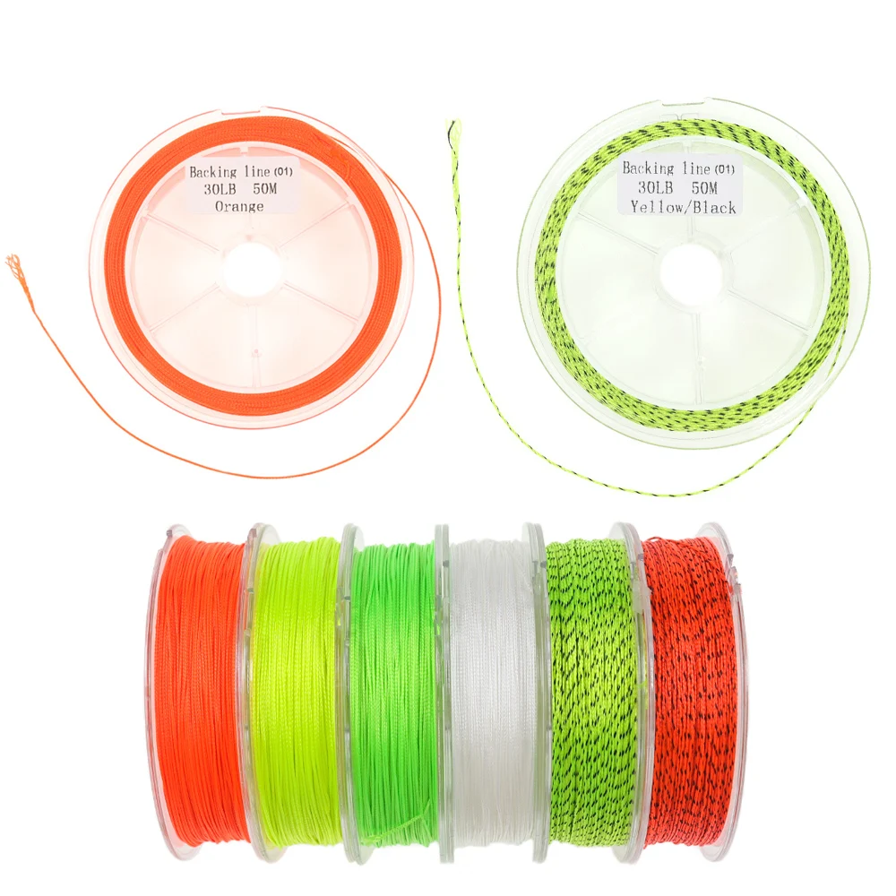 ICERIO-línea de pesca con respaldo para pesca con mosca, 50M, 30LB, multicolor, poliéster, trenzado, alambre de repuesto, equipo de pesca, línea de mosca con respaldo