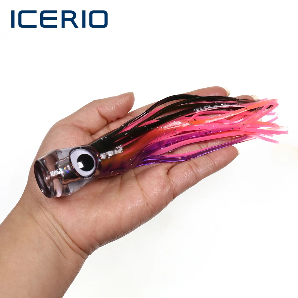 ICERIO 6,5 ''/49g señuelo de curricán de mar profundo cabeza de resina de hundimiento rápido pulpo calamar falda de silicona para atún Wahoo cebo