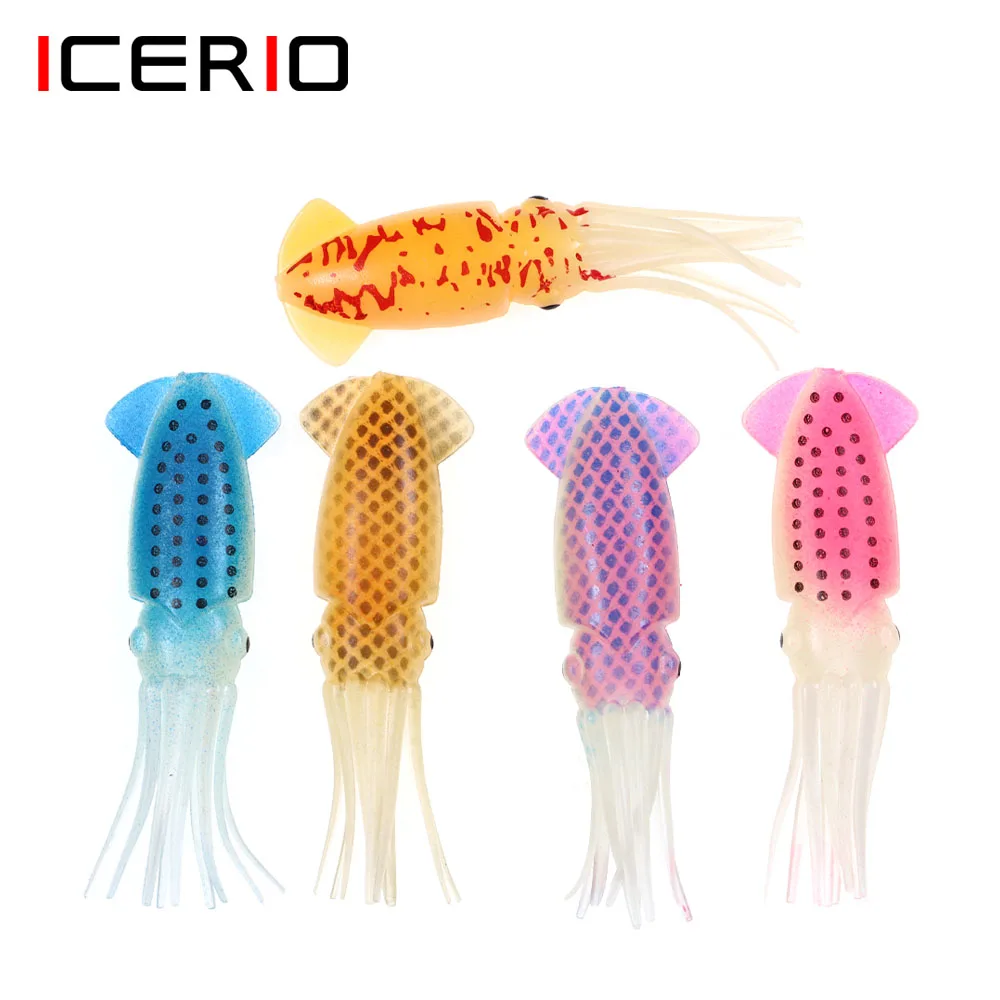 ICERIO-señuelo de calamar de goma suave, cebo de pulpo suave luminoso para pesca en agua salada, Señuelos de Pesca Jigging de goma, 5 piezas.