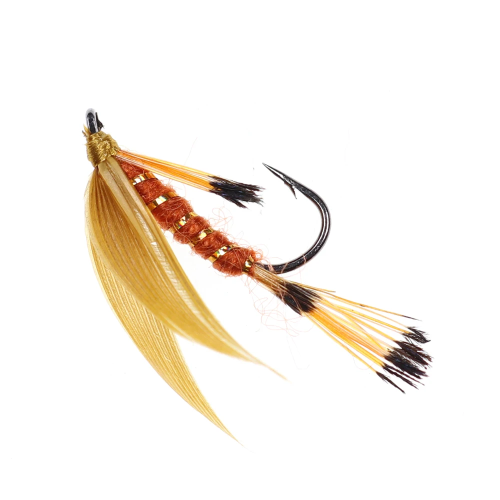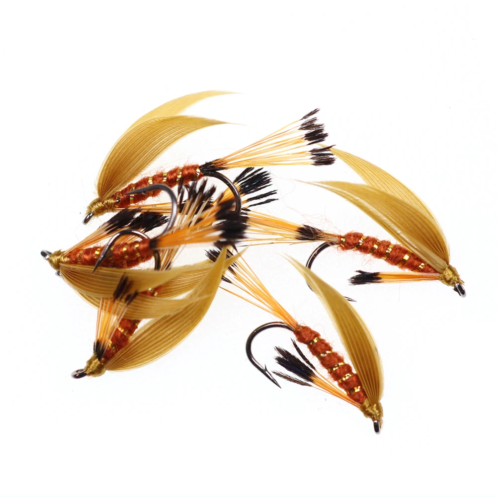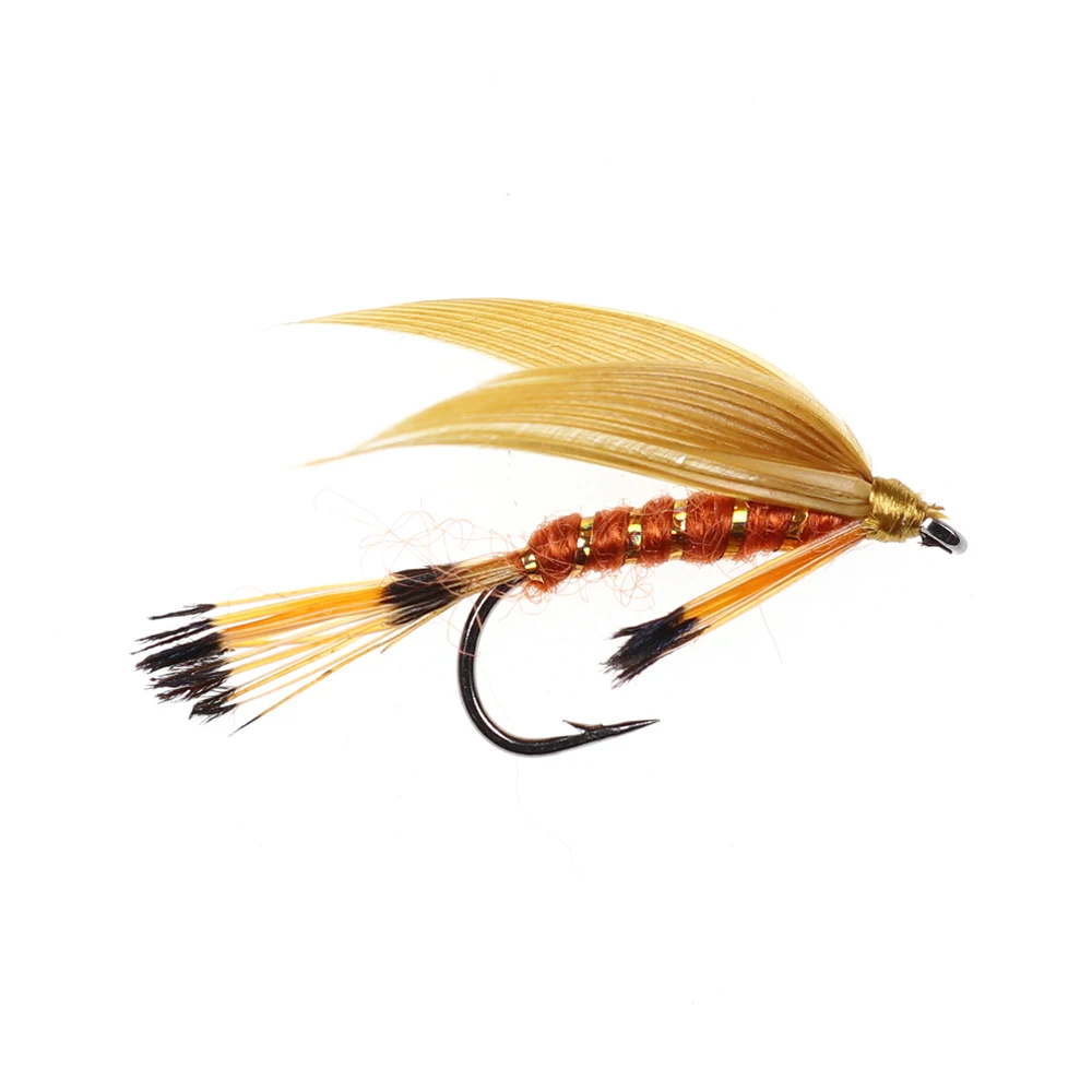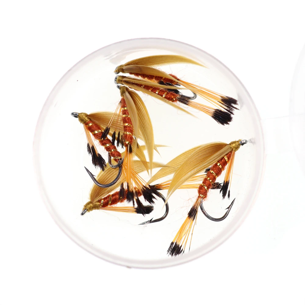 Moscas húmedas Las truchas húmedas ofrecen una forma emocionante de pesca para la trucha. Mejor si se tira a través de una ola, la trucha a menudo se inclina detrás de las moscas hasta que decidan golpearla, y a menudo dura. Las moscas húmedas se pescan mejor bajo la superficie con una línea intermedia. Cuando hay peces en crecimiento alrededor tirando de una mosca húmeda, a menudo animará a la trucha a perseguir. Receta de la mosca: Marca: ICERIO Tamaños del gancho: 12 Hilo de seda: oro Cola: faisán dorado Tippets Cuerpo: hilo rojo Canalé: oropel dorado ovalado Hackle: Tippets de faisán dorado ALA: pato gris Volar especies objetivo típicas: trucha ect .. Lista del paquete: 6 unids/caja