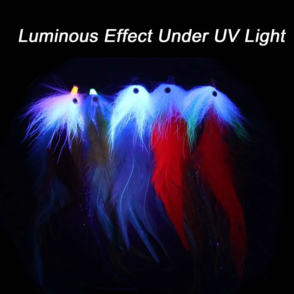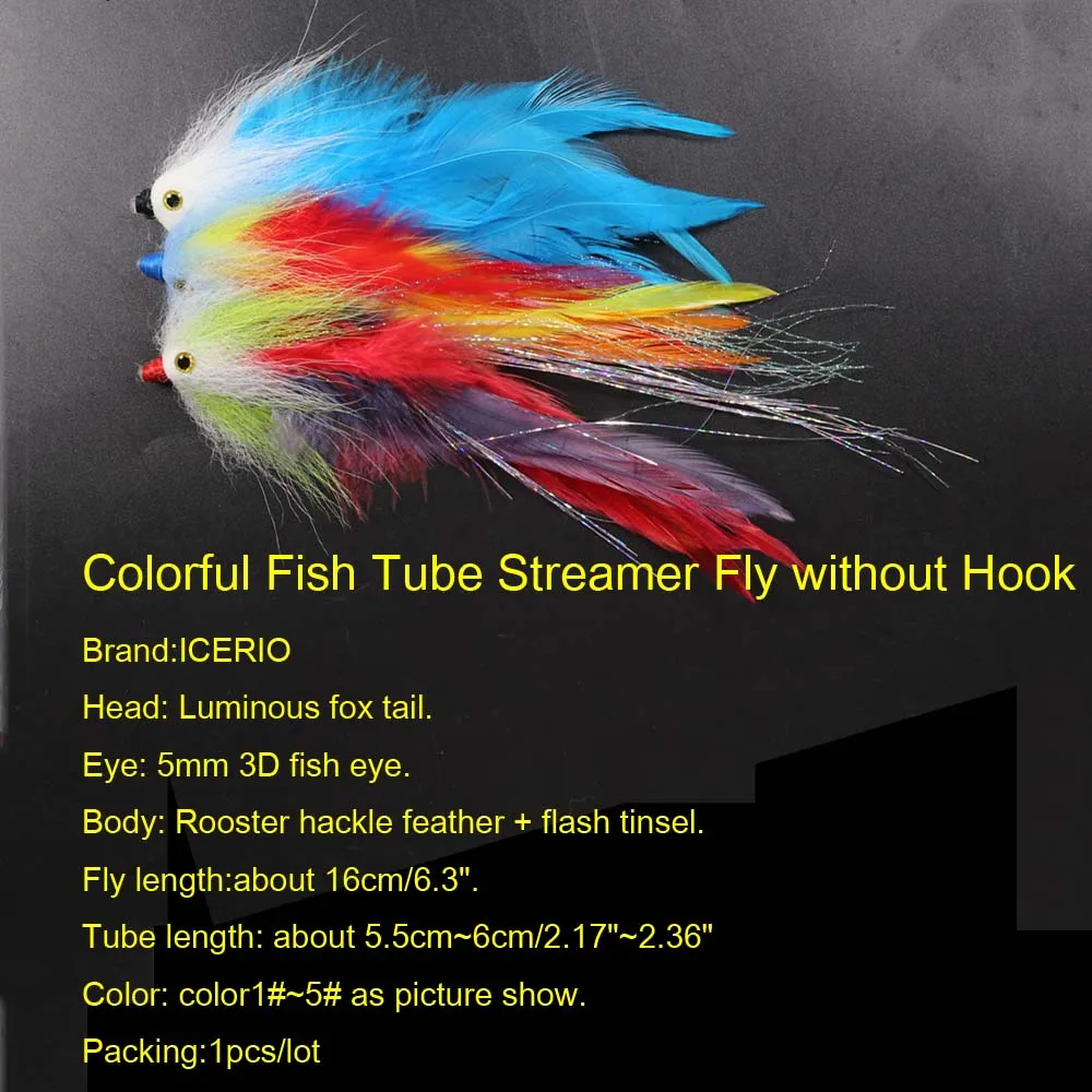 ICERIO 2PC 3D ojo de pez colorido luminoso zorro cola tubo serpentina mosca sin gancho gallo Hackle agua salada Lucio lubina pesca señuelo mosca