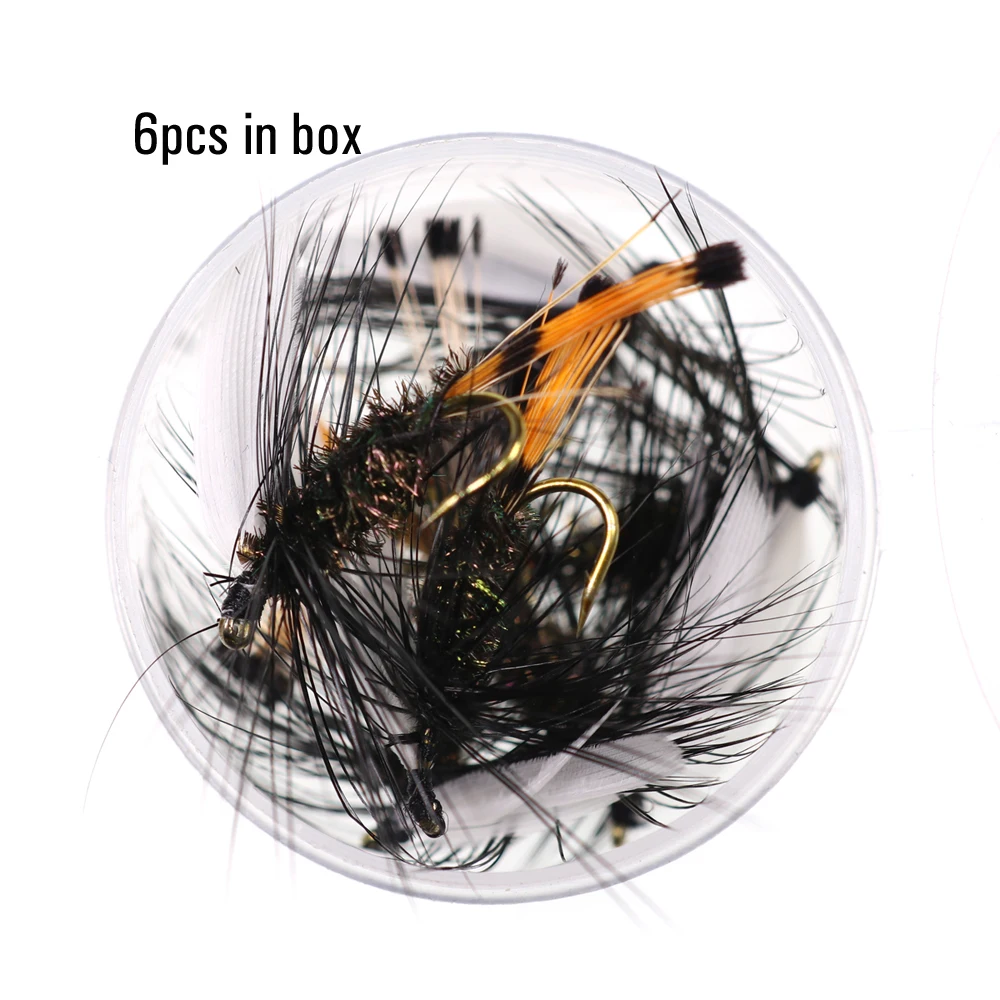 Faisán Tippet Tail Wet Fly Las truchas húmedas ofrecen una forma emocionante de pesca para la trucha. Mejor si se tira a través de una ola, la trucha a menudo se inclina detrás de las moscas hasta que decidan golpearla, y a menudo dura. Las moscas húmedas se pescan mejor bajo la superficie con una línea intermedia. Cuando hay peces en crecimiento alrededor tirando de una mosca húmeda, a menudo animará a la trucha a perseguir. Receta de la mosca: Marca: ICERIO Tamaños de los ganchos: 10 Hilo de seda: negro 8/0 UNI Cola: faisán dorado Tippets Cuerpo: pluma de pavo real Hackle: Gallo negro o gallina Volar especies objetivo típicas: trucha ect .. Lista del paquete: 6 unids/caja