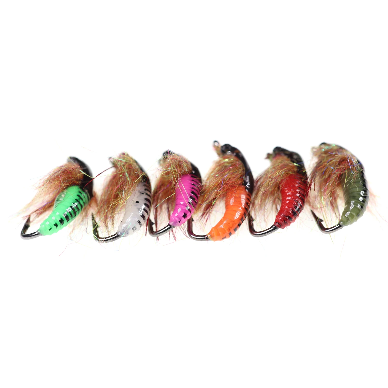 ICERIO 6PCS Caddis Pupae Nymphs Chrysalis Trucha Pesca Mosca Señuelo Cebos
