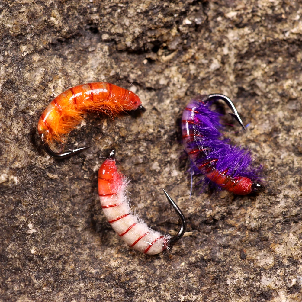 ICERIO 3 uds ninfas checas Scud Bug gusano moscas con anzuelo de púas trucha pesca mosca señuelo cebo