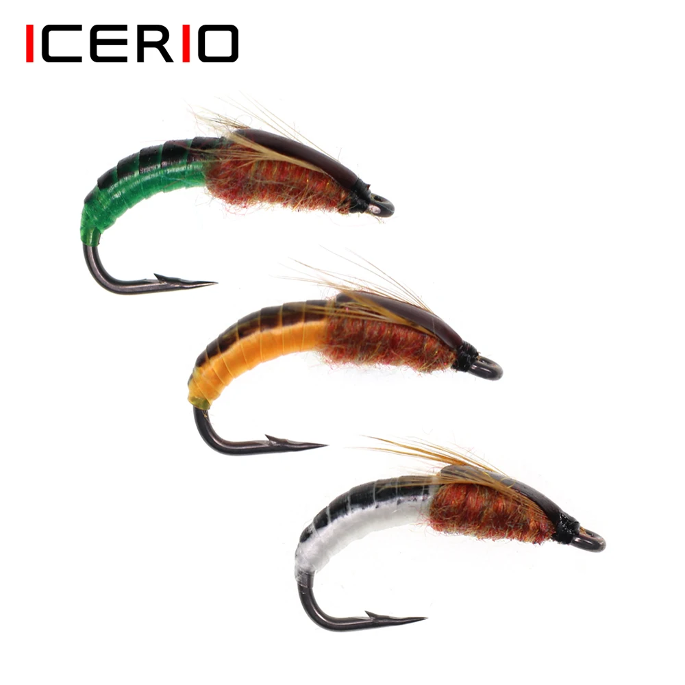 ICERIO 6 Scud Ninfas Gusano Moscas Trucha Pesca Mosca Señuelo Cebos Púas Mosca Anzuelo