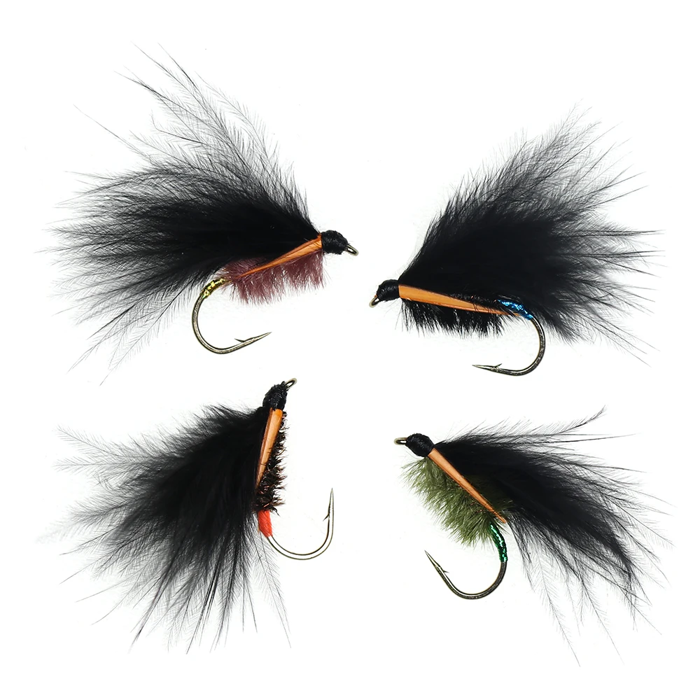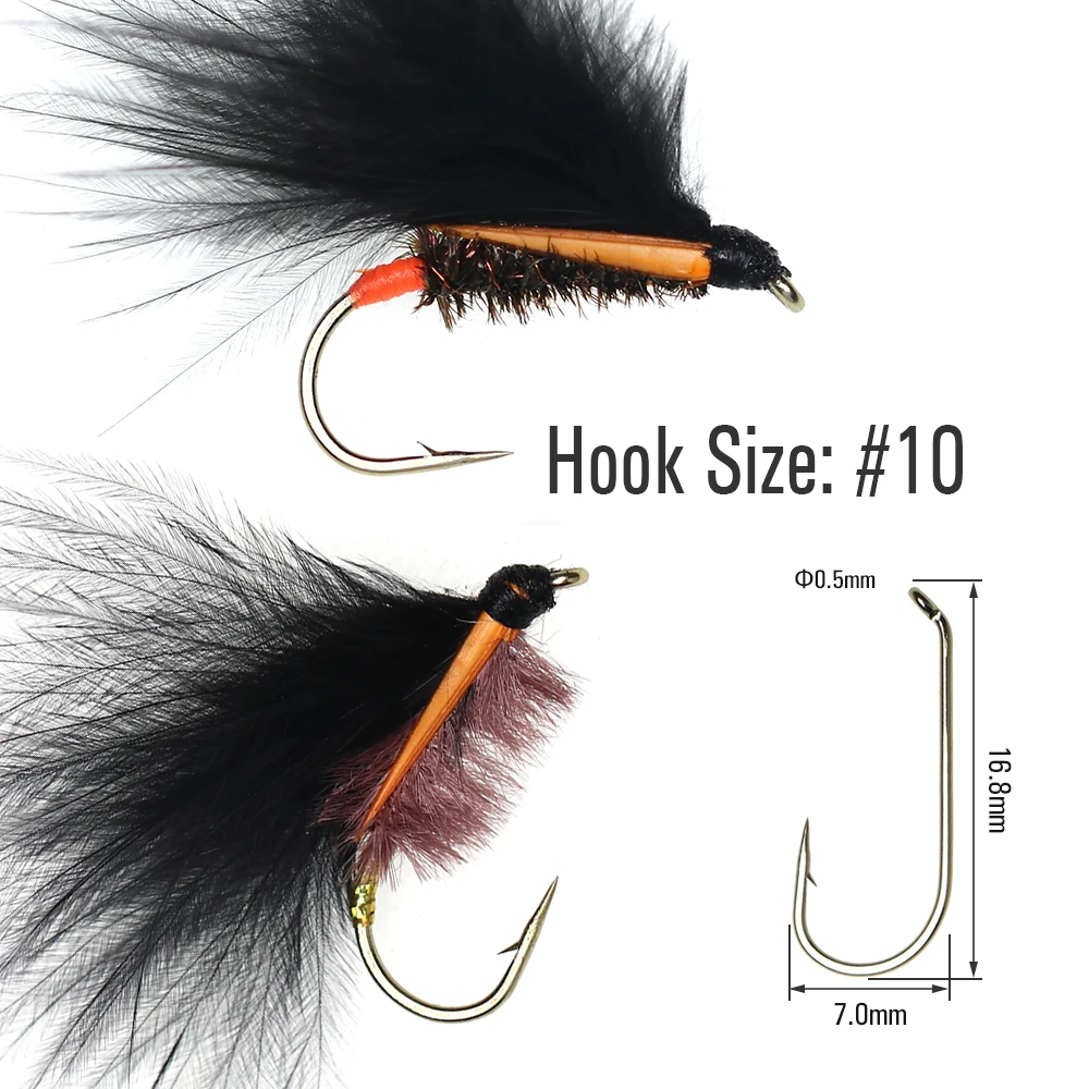 ICERIO 8PCS Black Marabu Feather Streamer Fly Trucha Pesca Fly Lure Baits