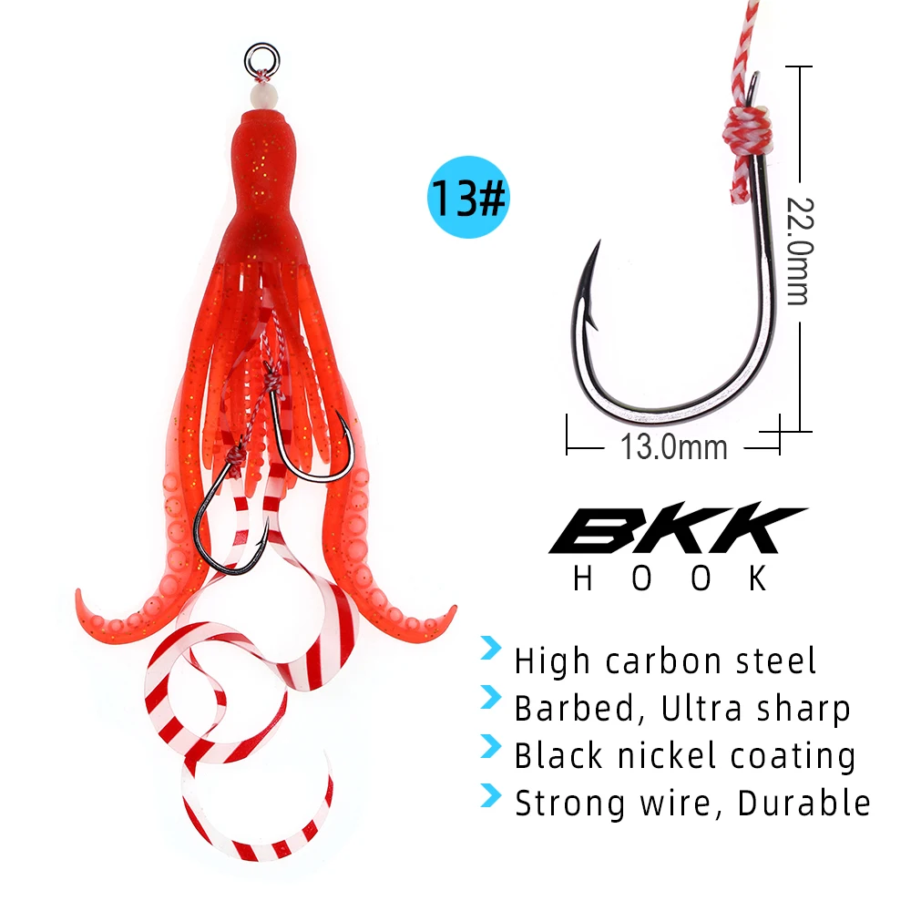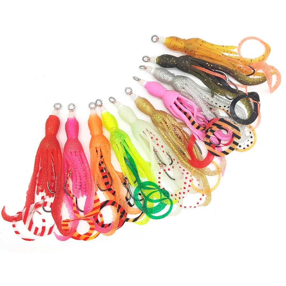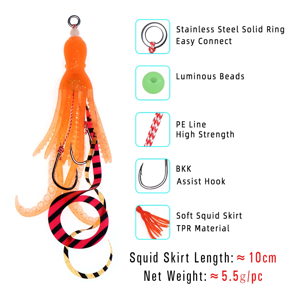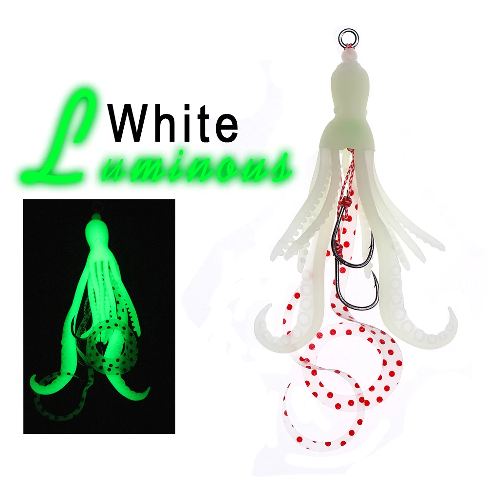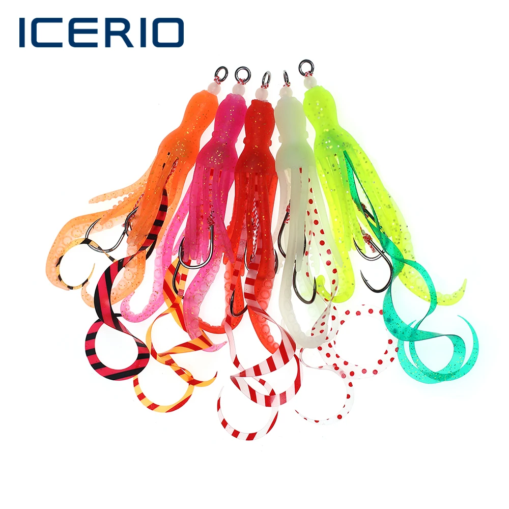 ICERIO señuelo suave de pesca UV pulpo falda de calamar con gancho de asistencia Snapper aparejos de pesca Jigging señuelo cebos