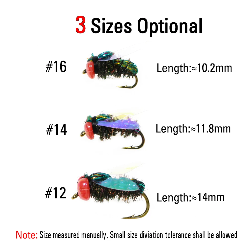 ICERIO 6 piezas #12 #14 #16 Beadhead, Mosquito de hundimiento lento, mosca del hogar, cebo realista para insectos, Señuelos de Pesca para truchas grises