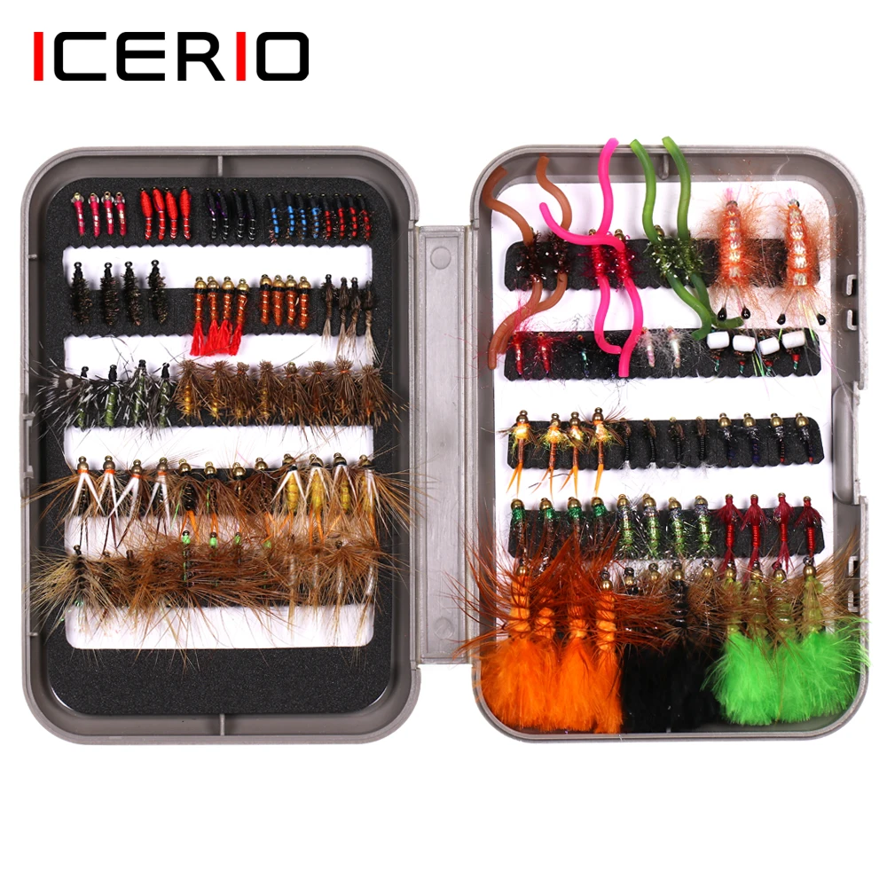 ICERIO 126 Uds Wooly Bugger Streamer ninfas larvas de gusano retorcido con caja de moscas para pesca de trucha señuelos con mosca cebos