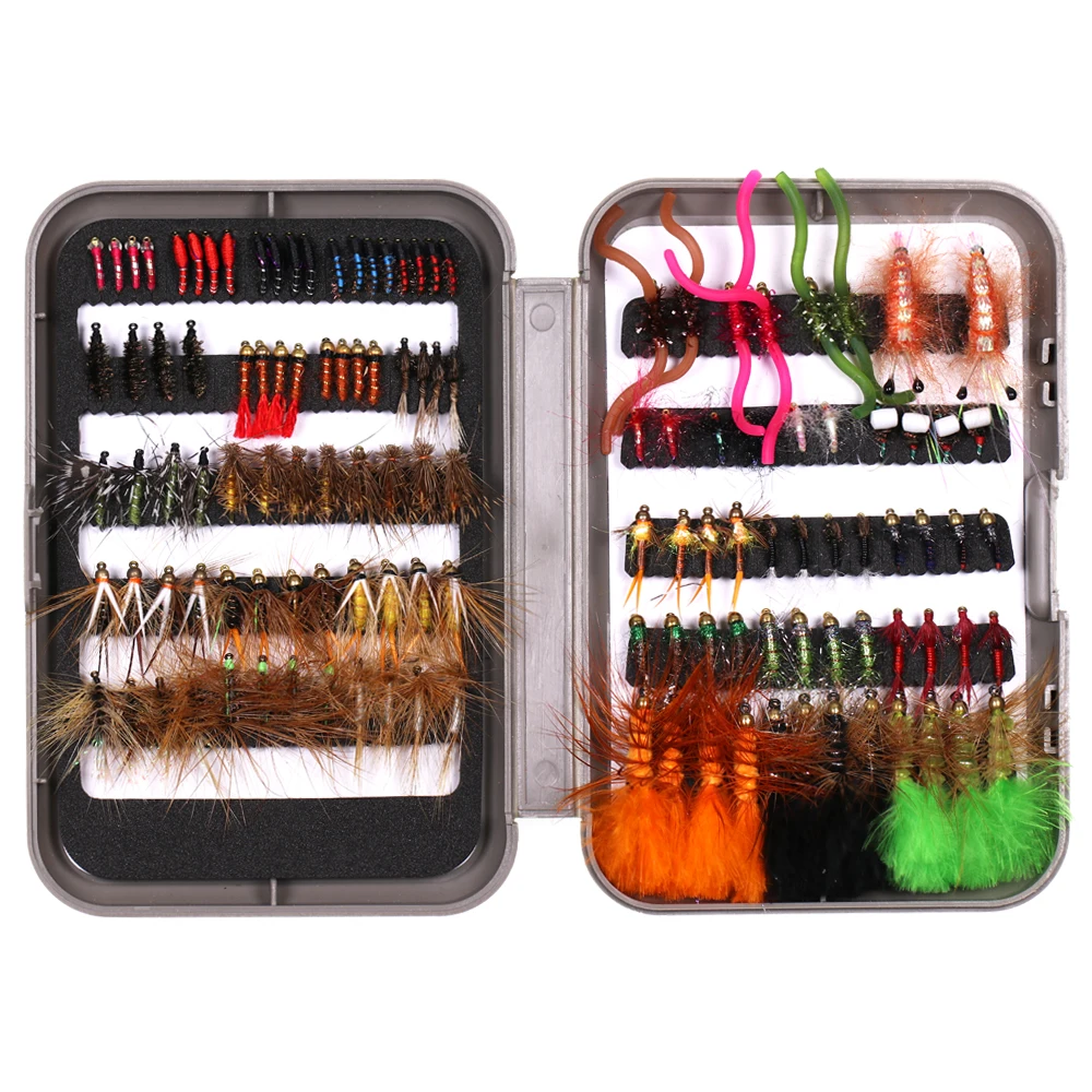 【Envasado decentement】 Las moscas se empaquetan en una caja de moscas duradera, tamaño de bolsillo compacto, las moscas están bien organizadas para su viaje de pesca.