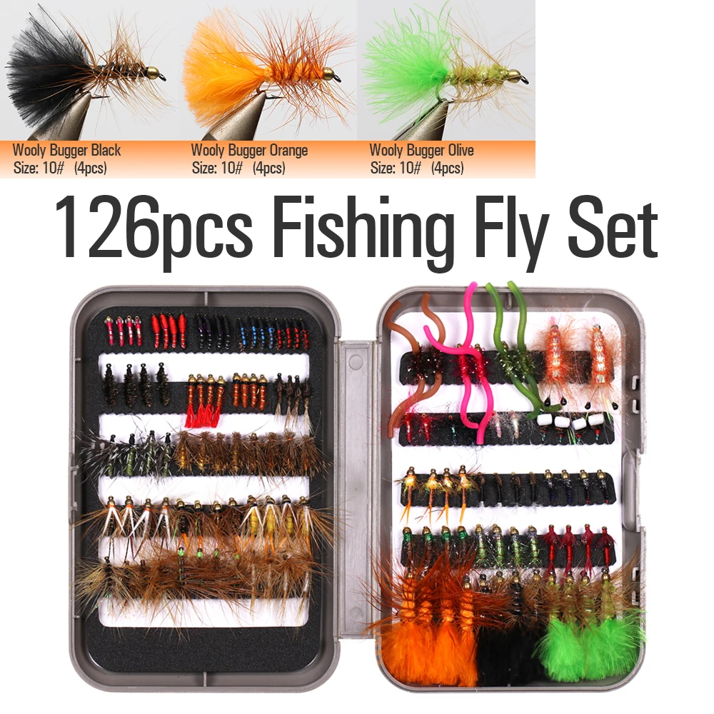 Juego de moscas de pesca de 126 piezas para pescador principiante/profesional que incluye: