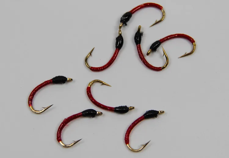 ICERIO 6PCS Red Body Larva Nymphs Trout Fly Fishing Lures #14