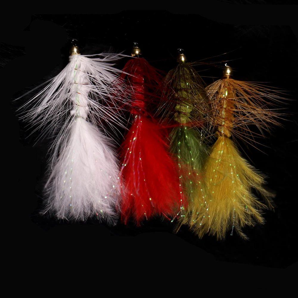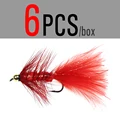 ICERIO-Señuelos de mosca de pesca, cebo de agua salada, cebo de trucha, cabeza de cuentas de latón de 6, color rojo Oliva, negro