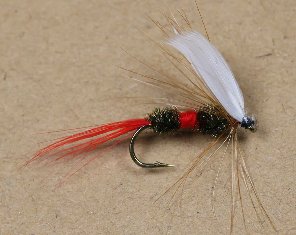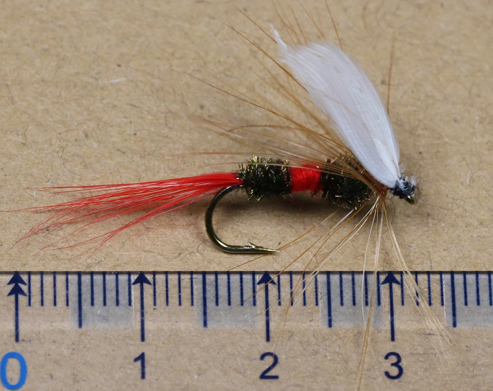 Características: 1. Las cualidades de captura de peces del estilo real son legendarias. 2. Dale el ala de mosca húmeda, y tienes un atractor muy efectivo y una mosca húmeda/emergente. 3. Le trae los peces, en esos días en los que no está pasando nada evidente en la superficie. 4. Una mosca con gran acción y contrastes de color, funciona bien en invierno y en días lluviosos. Receta de la mosca: Tamaño del gancho: tamaño 12 Hilo: hilo de atado Ultra 140, negro Cuerpo: hilo dental único Uni, Rojo HACKLE: Hackle Dry Fly, Marrón coachman ALA: pluma de ganso, blanco Cola: roja Lista del paquete: 6 unids/caja