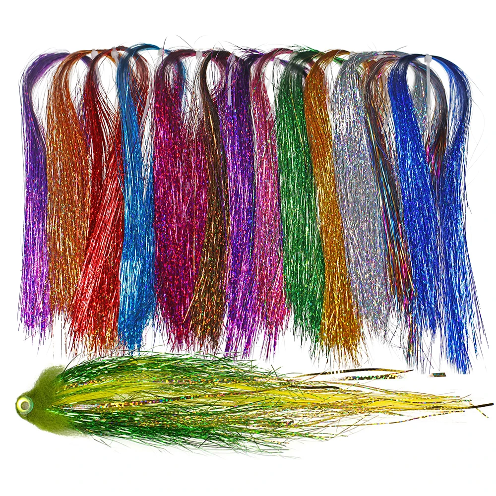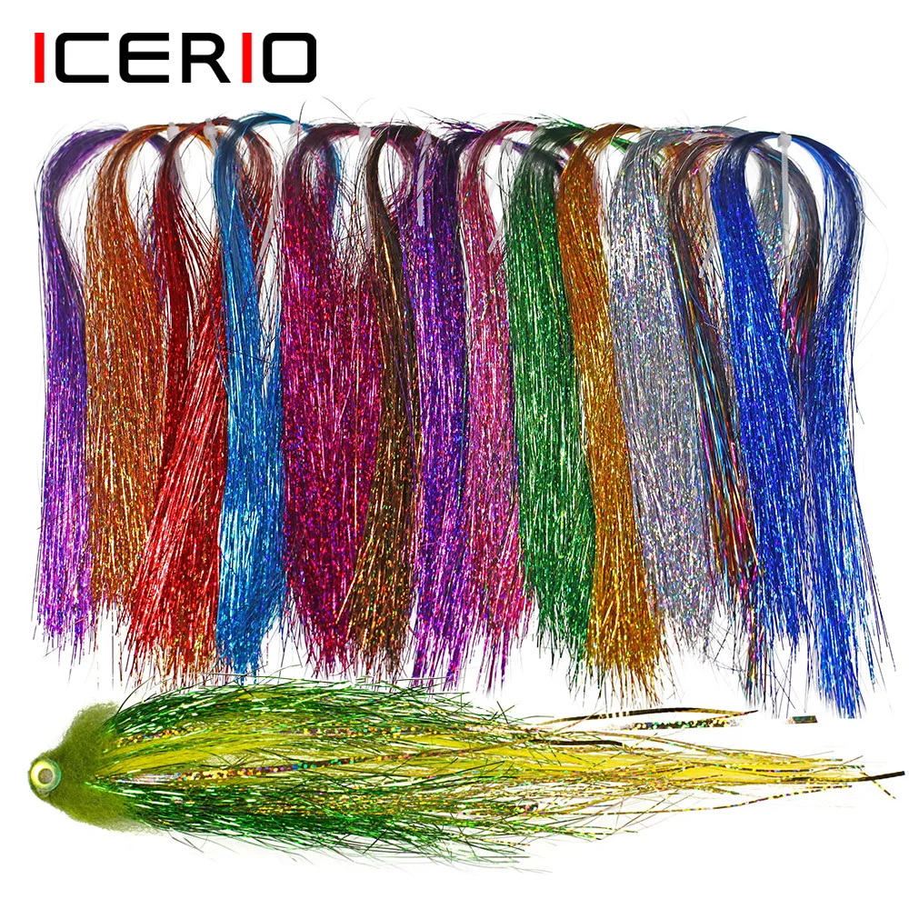 ICERIO suave holográfico plano Krystal Flash Tinsel Flashabou Material para atar moscas Lucio trucha serpentinas plantilla anzuelo de pesca señuelo