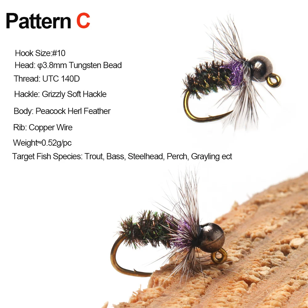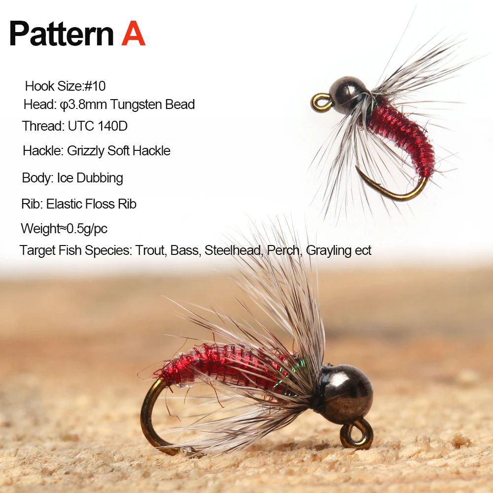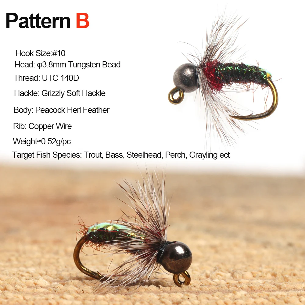 Moscas de tungsteno comúnmente utilizadas como moscas de nailon de estilo europeo. La ninfa vuela con la cabeza de cuentas de tungsteno se hunde rápidamente, lo cual es muy efectivo bajo el agua.