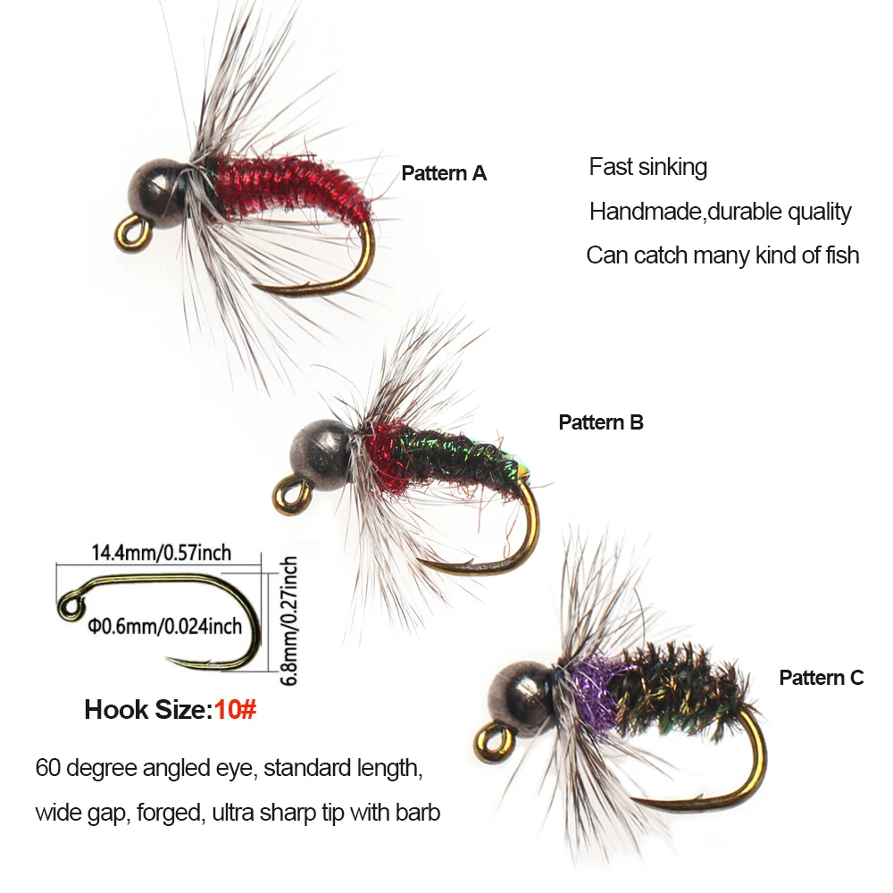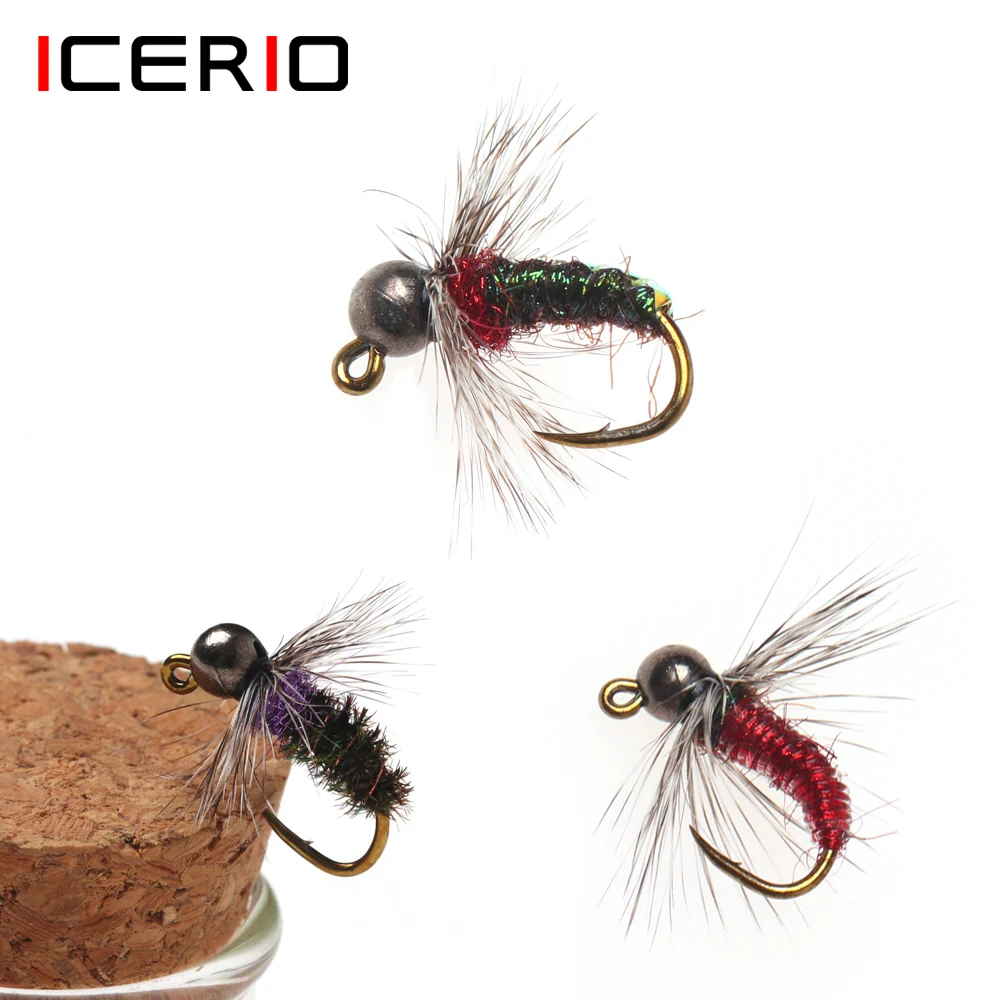 ICERIO#10 6 uds cabeza de cuentas de tungsteno púas plantilla ninfa mosca fregadero rápido húmedo Euro ninfa mosca trucha lubina Señuelos de pesca cebos artificiales
