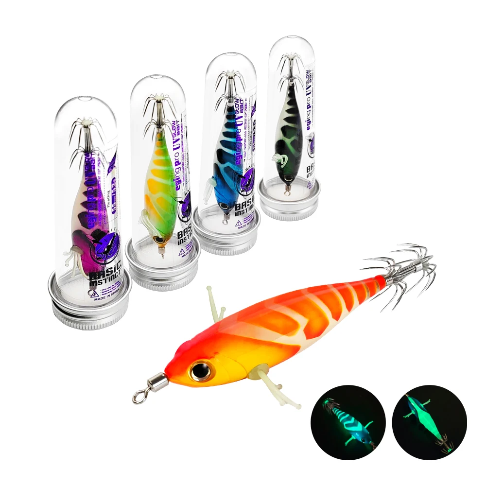 ILURE 2025 cebo de calamar luminoso 8 cm/5,2g madera Artificial camarones calamar anzuelo pulpo sepia camarones cebos de agua salada aparejos