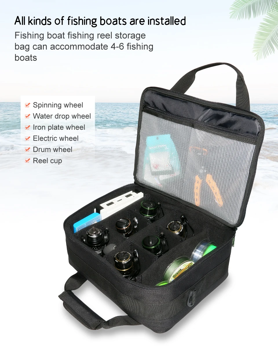 ILURE-Bolsa de almacenamiento de ruedas de pescado de gran capacidad, tela Oxford impermeable, algodón, parte inferior absorbente de golpes, accesorios de pesca antideslizantes