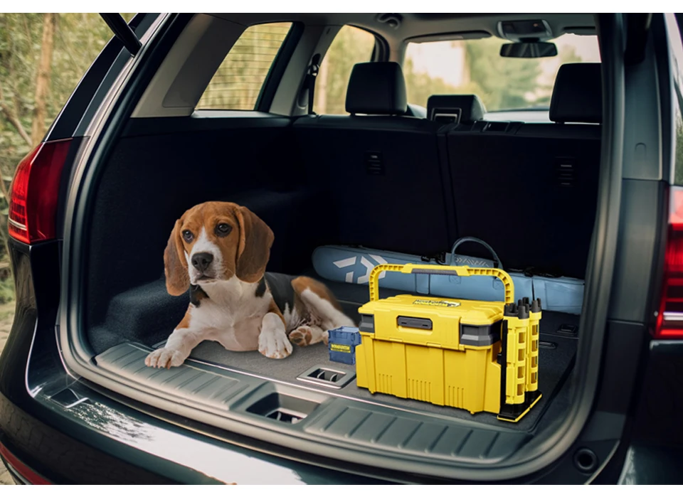 Contiene: 1 caja de pesca, 2 soportes para caña de pescar, 1 portavasos.