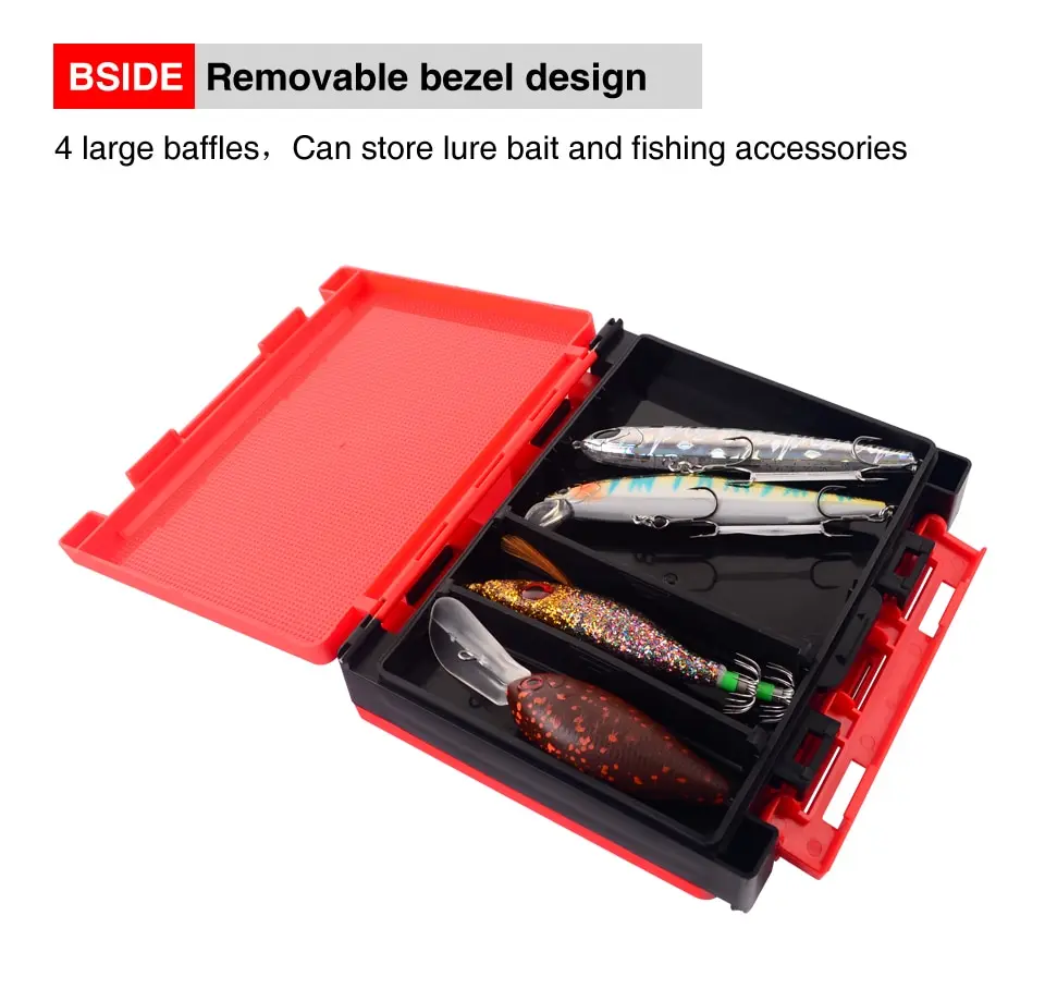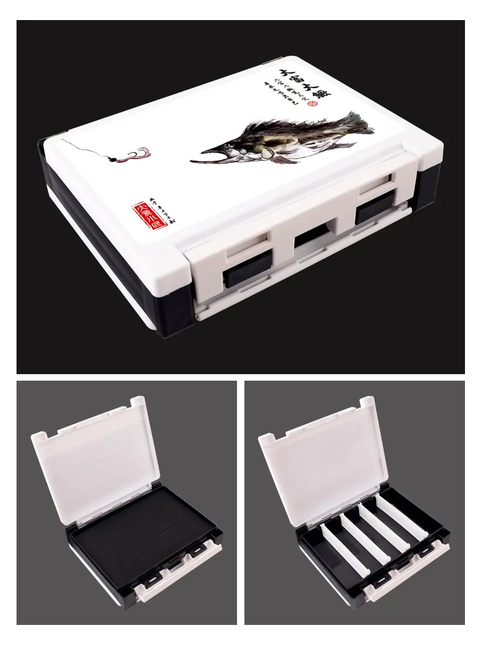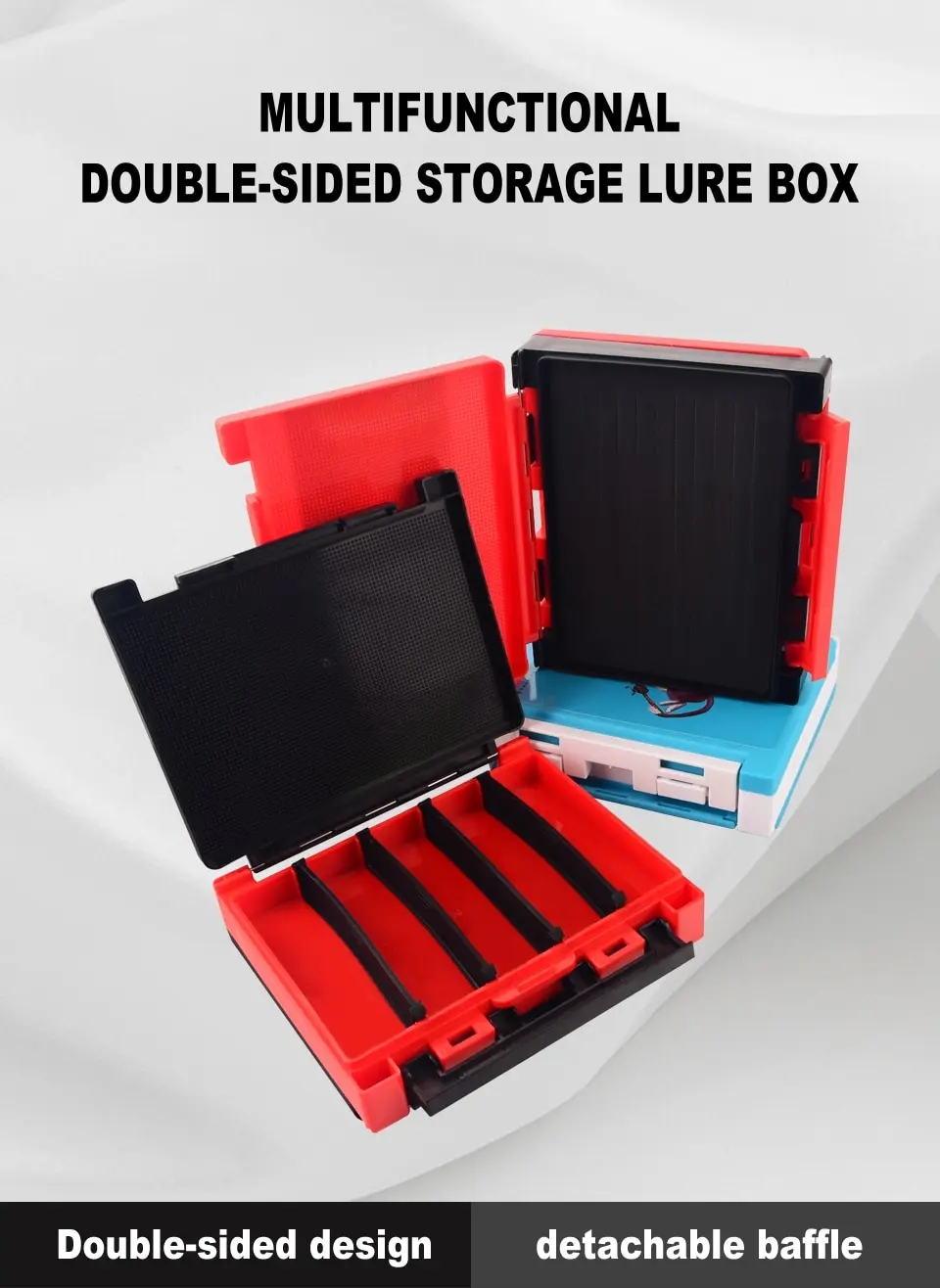 Caja de aparejos de pesca portátil ILURE, almacenamiento multifunción, herramientas de pesca, caja de plástico de doble cara, caja de accesorios para cebo