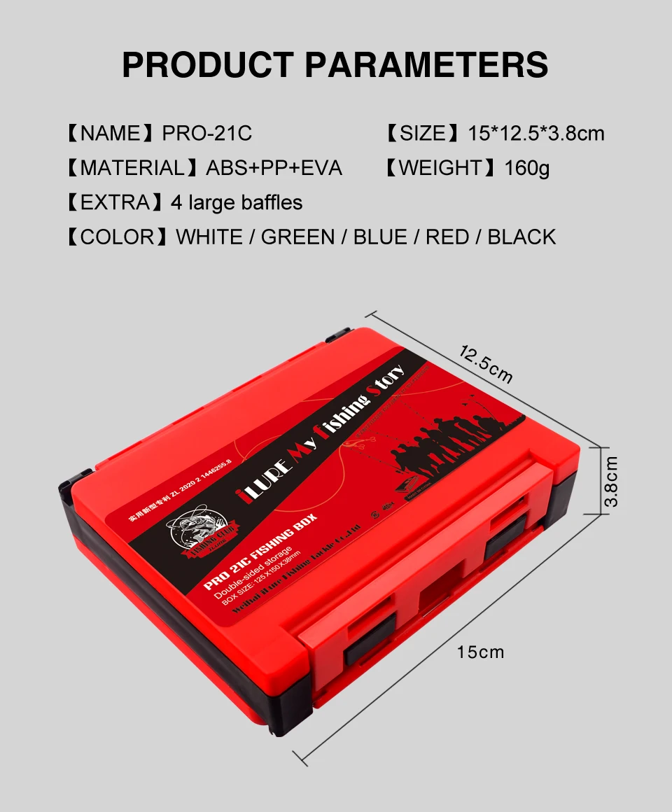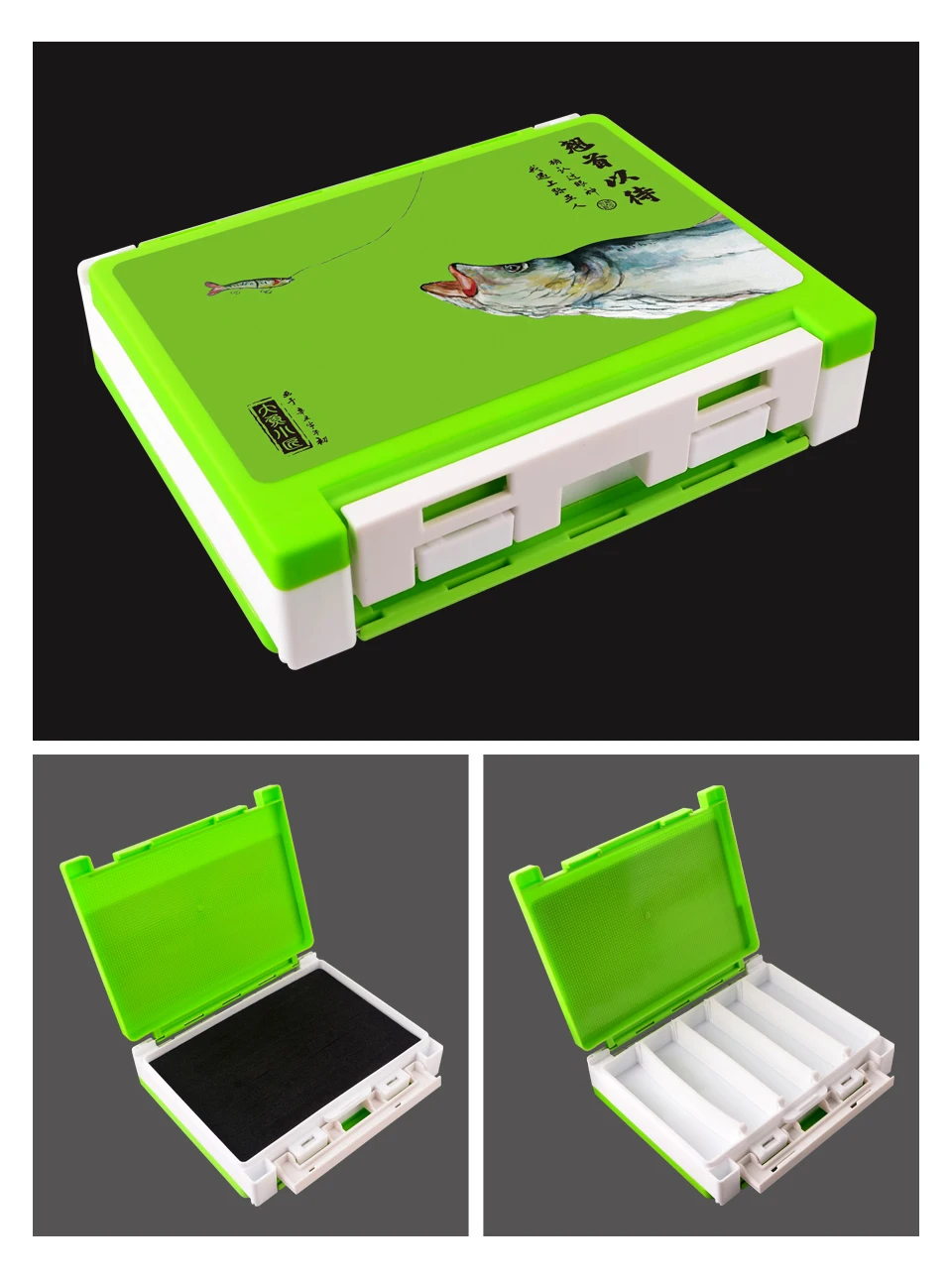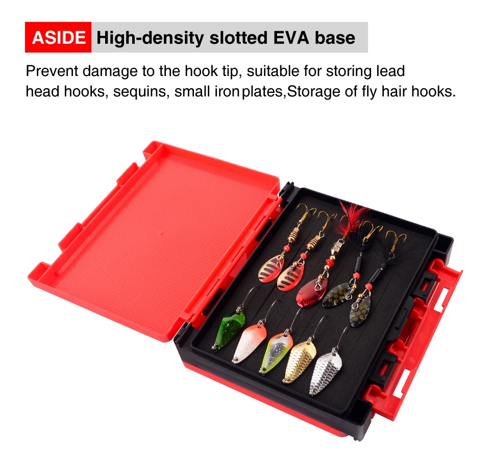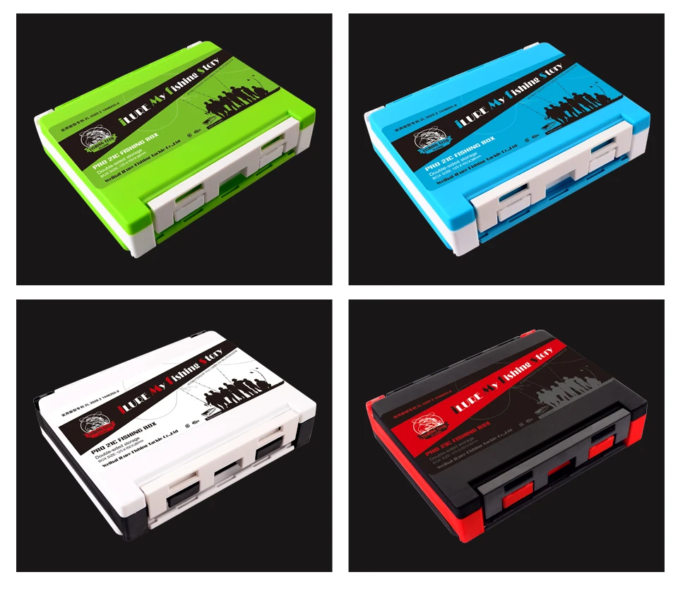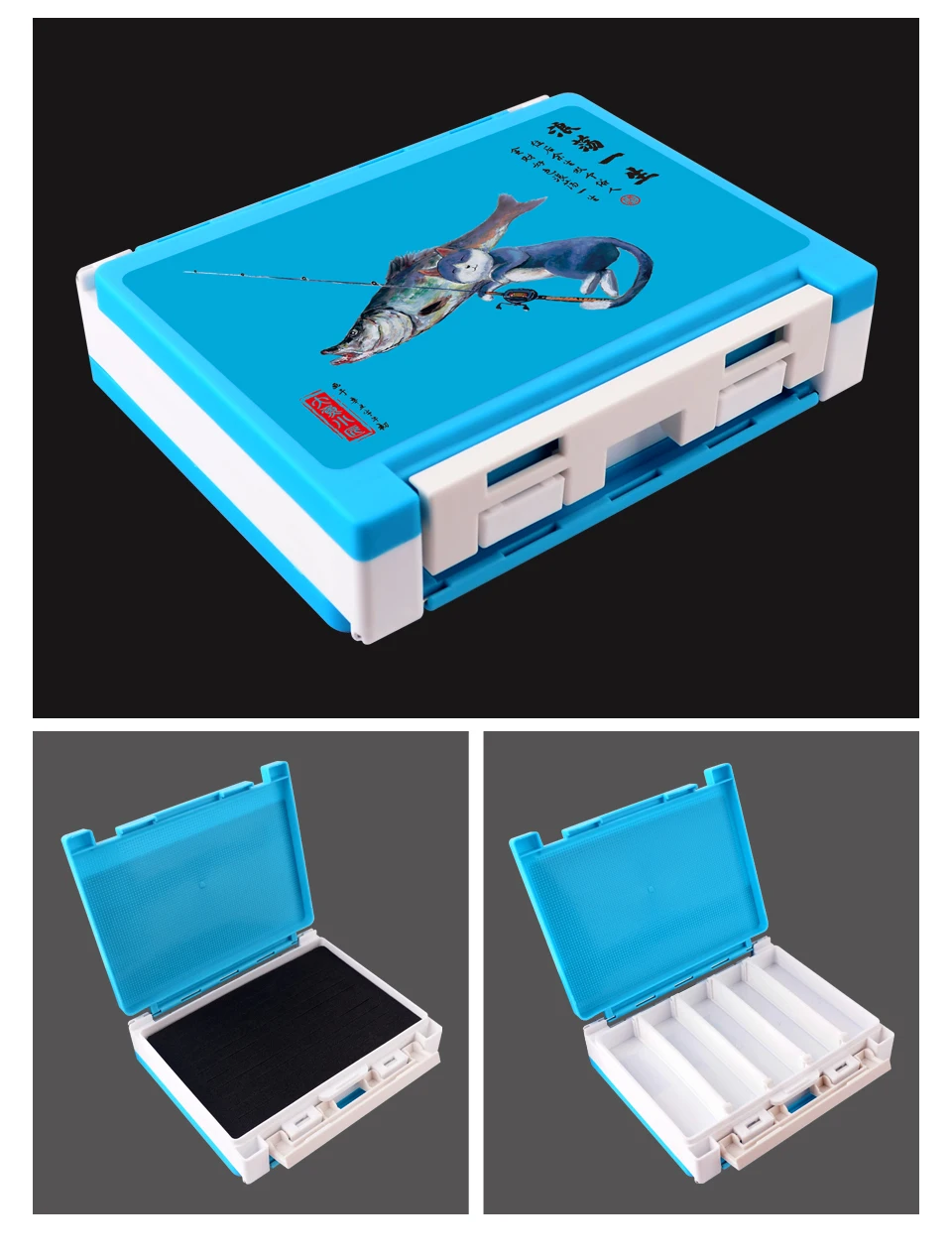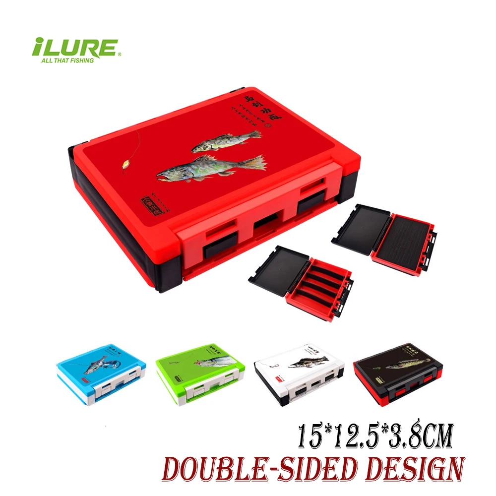 ILURE, nuevas cajas de cebo de plástico de doble cara, caja de cebo de alta calidad, gancho de cabeza de plomo colgante, ganchos de plantilla de lentejuelas, caja de accesorios