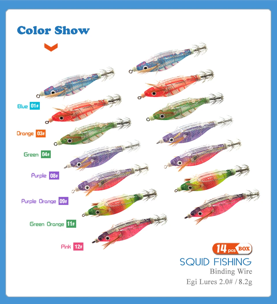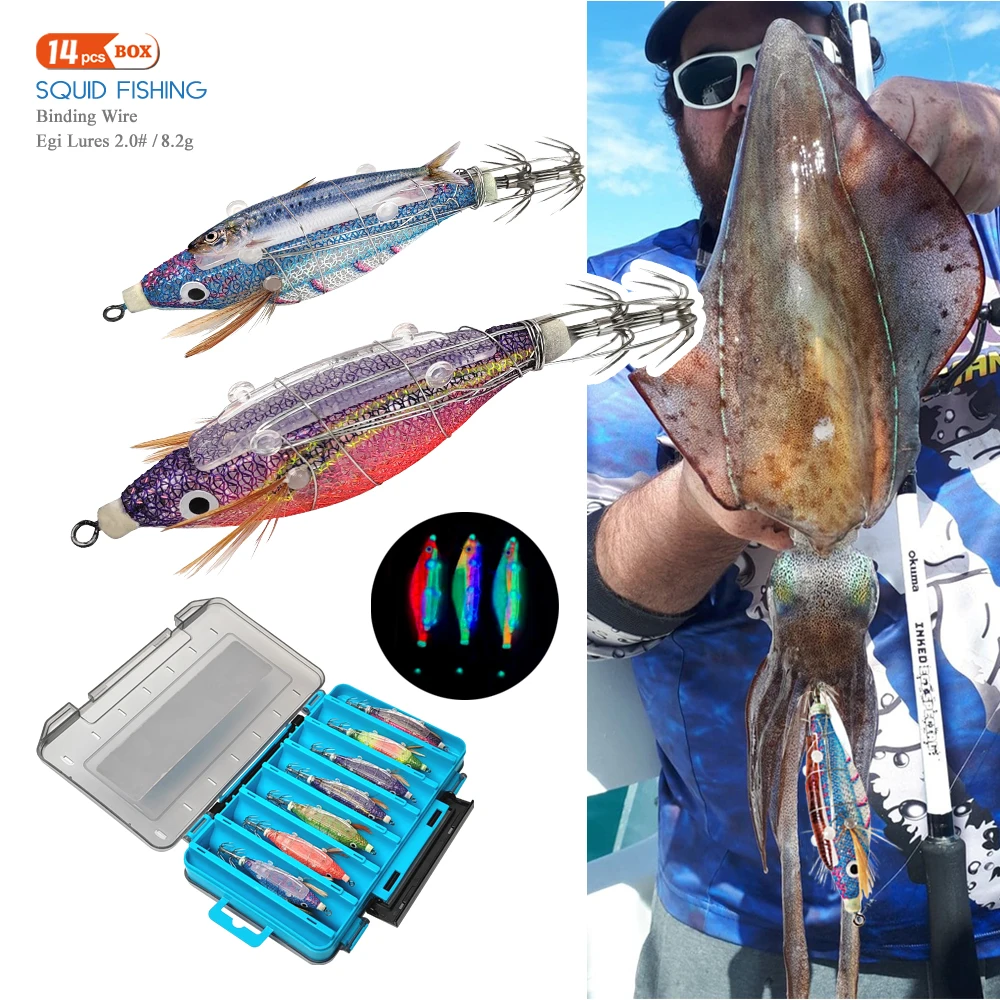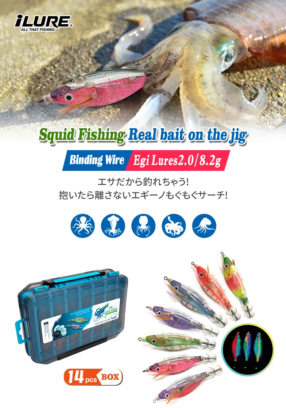 ILURE-señuelo de calamar luminoso de 14 piezas, plantilla de calamar Egi 2,0 #85mm 8,2g, cebo Artificial para Webfoot, pulpo, sepia, Señuelos de Pesca de Mar