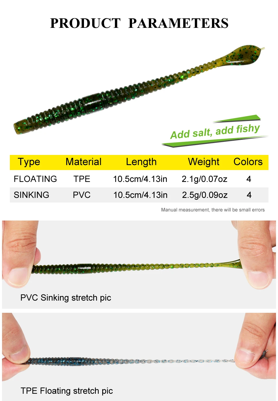 ILure-señuelo de pesca de 10 piezas, 10,5 cm, señuelos blandos de lubina, cebo Artificial de silicona, gusano, sábalo, Anguila, gusanos, cebos artificiales, aparejos