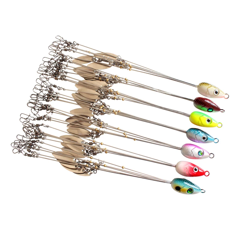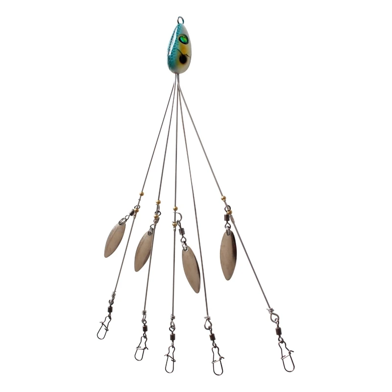 ILURE-señuelo de pesca de 5 brazos, cebo giratorio de lentejuelas, cabeza de aparejo de paraguas, hoja de mimbre ultraligera