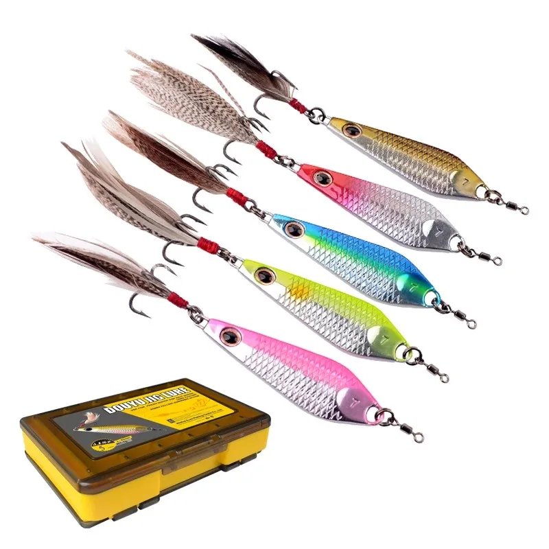 ILURE-señuelo de pesca de 5 piezas, plantilla de Metal VIB 7g-28g, cebo duro Artificial, ojos 3D, Wobblers de hundimiento, aparejos de pesca de mar, lubina y trucha