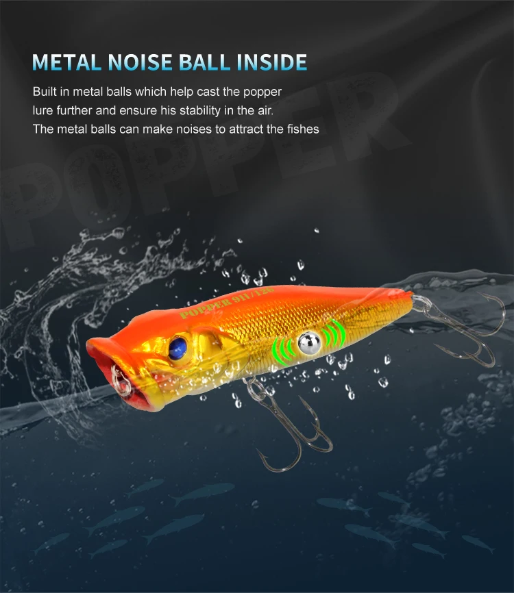 6. Bolas de metal: Bolas de acero inoxidable en el interior, para mantener el equilibrio del señuelo de pesca, para la mayor distancia de lanzamiento.