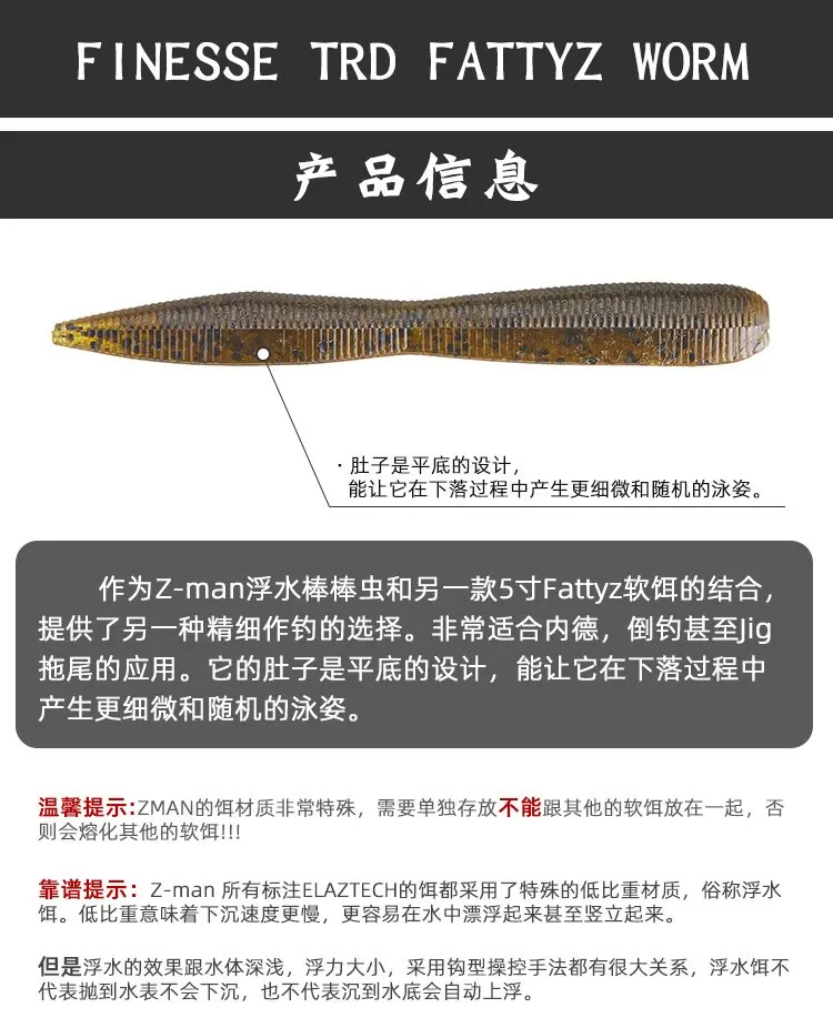 Importado de los Estados Unidos ZMAN FATTYZ 3,25 pulgadas fideos gusano grupo de pesca fina aguja de pesca invertida señuelo de pescado blando