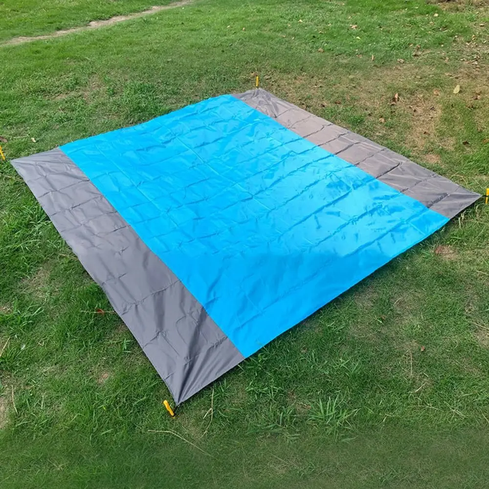 Quantity:1set Made of 210D Oxford cloth with unique waterproof processing, protects you and your belongings against dampness. Can also be used as a sun / rain canopy by fixing the mat through the noose. Come with a drawstring bag, folding into compact size for convenient carry. Great for camping, beach, picnic, tent,etc.