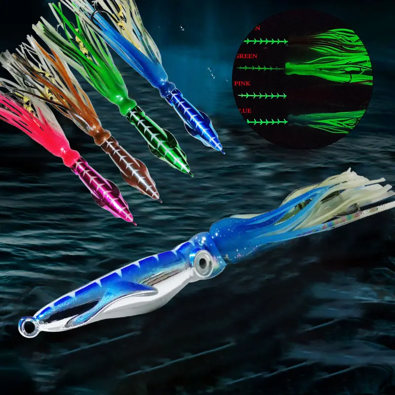 Inchiku-señuelo de Pesca de alambre de plantilla lenta, cebo de Pitch, cabeza de Metal, falda de pulpo, Jigging artístico, Leurre, 1 piezas