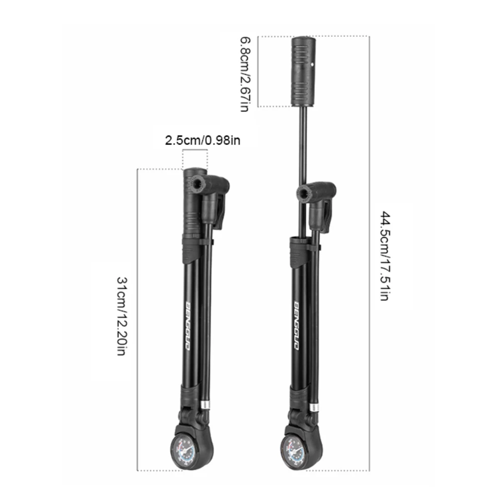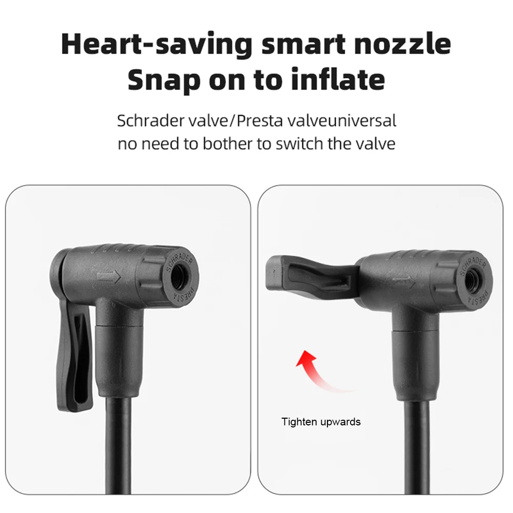 * 3. Compatibilidad universal: La bomba es compatible con las válvulas Presta y Schrader, eliminando la necesidad de conversiones de boquillas.